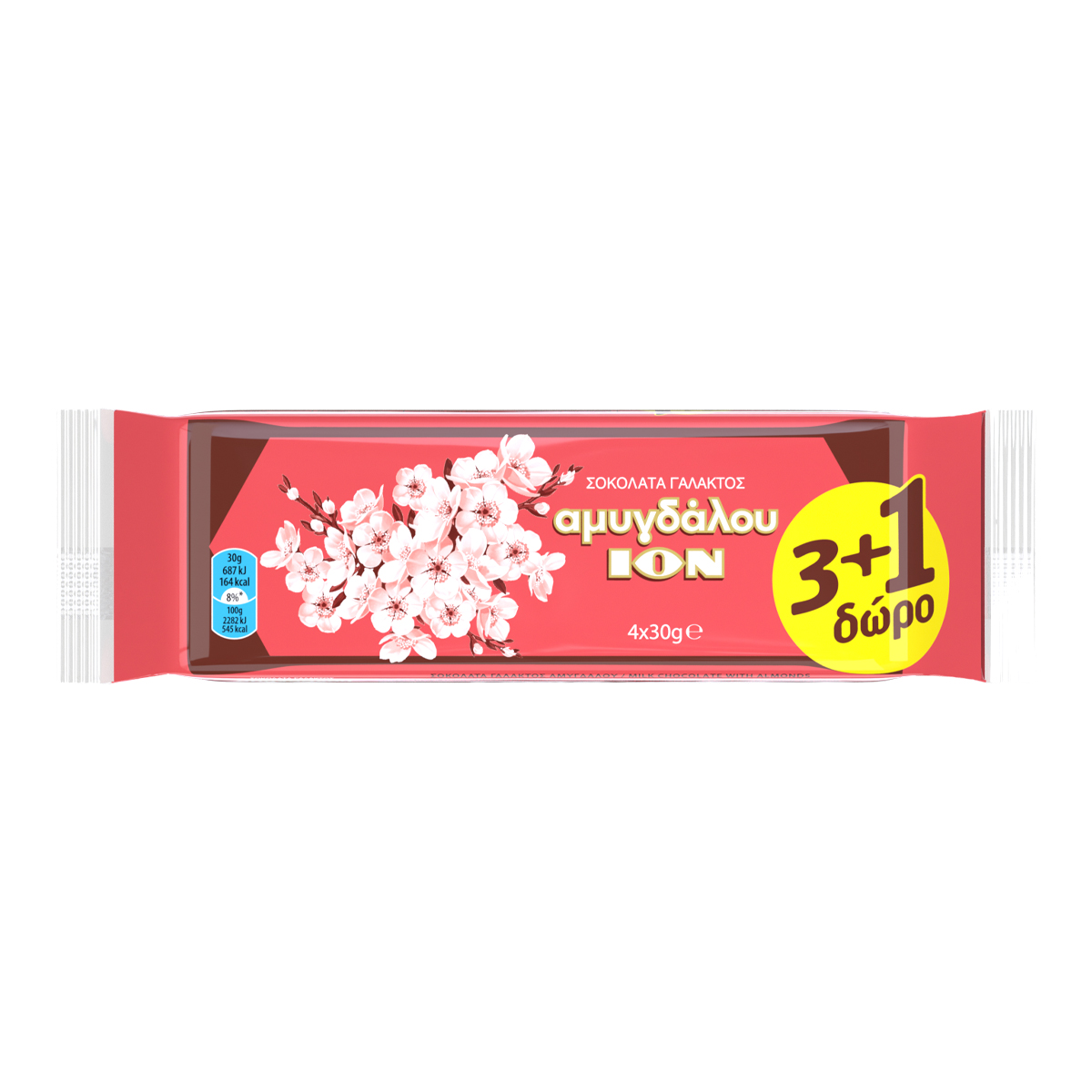 ION Αμυγδάλου Σοκολάτα Γάλακτος 3 x 30 gr + 1 Τεμάχιο Δώρο