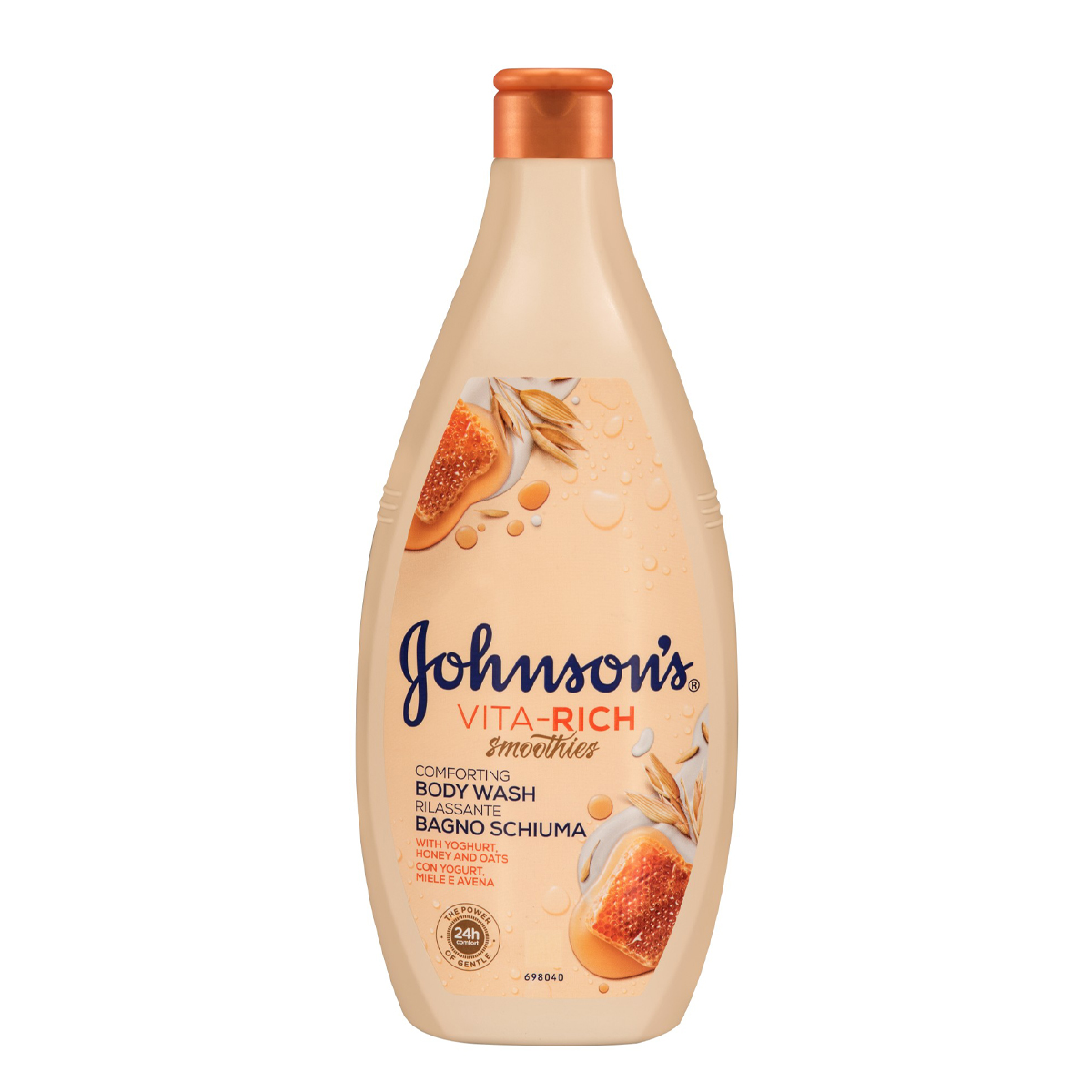 Johnson's® Vita-Rich Smoothies Comforting Αφρόλουτρο με Συμπύκνωμα Γιαουρτιού, Μέλι & Βρώμη 750ml. Χάρη στην πλούσια σύνθεση με γιαούρτι, μέλι και βρώμη, αυτό το αφρόλουτρο αναζωογονεί τις αισθήσεις. Εμπλουτισμένο με ένα διακριτικό και απαλό άρωμα, ενυδατώνει και καταπραΰνει την ξηρή επιδερμίδα, προσφέροντας αίσθηση άνεσης για 24 ώρες. Η επιδερμίδα σας είναι όμορφη, μεταξένια και απαλή, με ένα υπέροχο, διακριτικό άρωμα. Θρεπτική θεραπεία του δέρματος, εμπνευσμένη από το ελληνικό γιαούρτι για όμορφο & φωτεινό δέρμα. Η πλούσια σύνθεσή του αναζωογονεί τις αισθήσεις, ενυδατώνει & καταπραΰνει την ξηρή επιδερμίδα, προσφέροντας αίσθηση άνεσης για 24 ώρες.