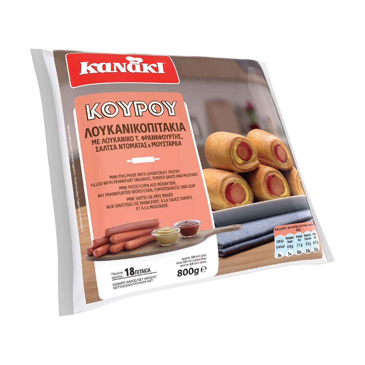 Με λουκάνικο τ. Φρανκφούτης, Σάλτσα Ντομάτας και Μουστάρδα. Μπισκοτένια και θριφτή ζύμη Κουρού αγκαλιάζει νόστιμα λουκάνικα, τυλιγμένα σε σάλτσα ντομάτας και μουστάρδα. Μια απολαυστική νοστιμιά που θα σας συναρπάσει.