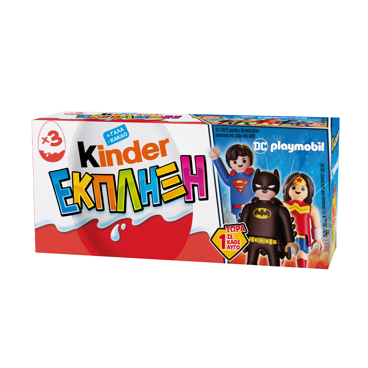 Η μαγεία της Kinder Έκπληξης! Η Kinder Έκπληξη είναι η μοναδική συνταγή που συνδυάζει τη καλή σοκολάτα Kinder με την χαρά της ανακάλυψης και εκπλήξεις που δεν τελειώνουν ποτέ. Ο συνδυασμός αυτών των τριών στοιχείων δημιουργεί έναν κόσμο διασκέδασης και ψυχαγωγίας που βοηθά τα παιδιά να αναπτύξουν τη φαντασία τους ενώ παράλληλα καθησυχάζει τις διατροφικές ανησυχίες των μαμάδων.