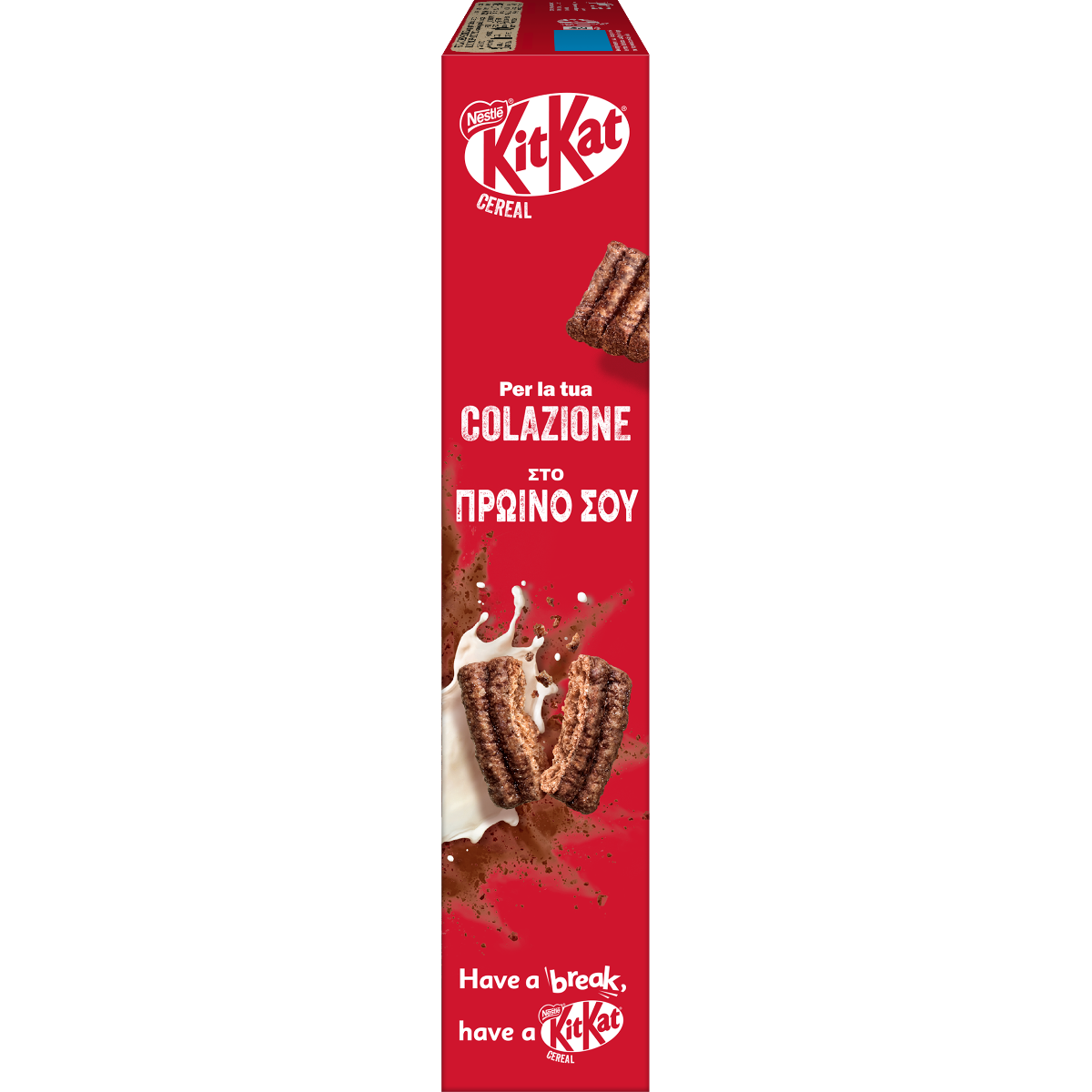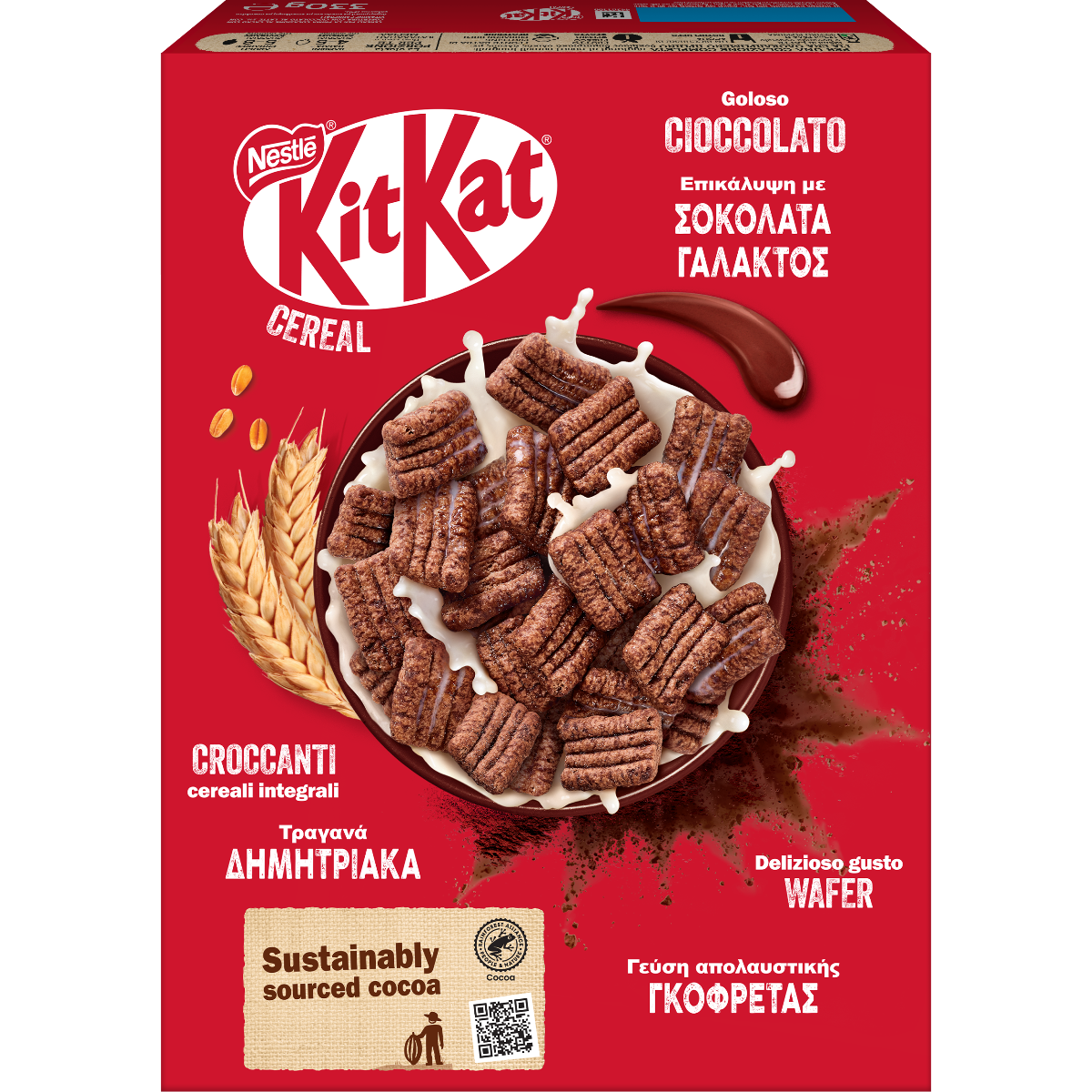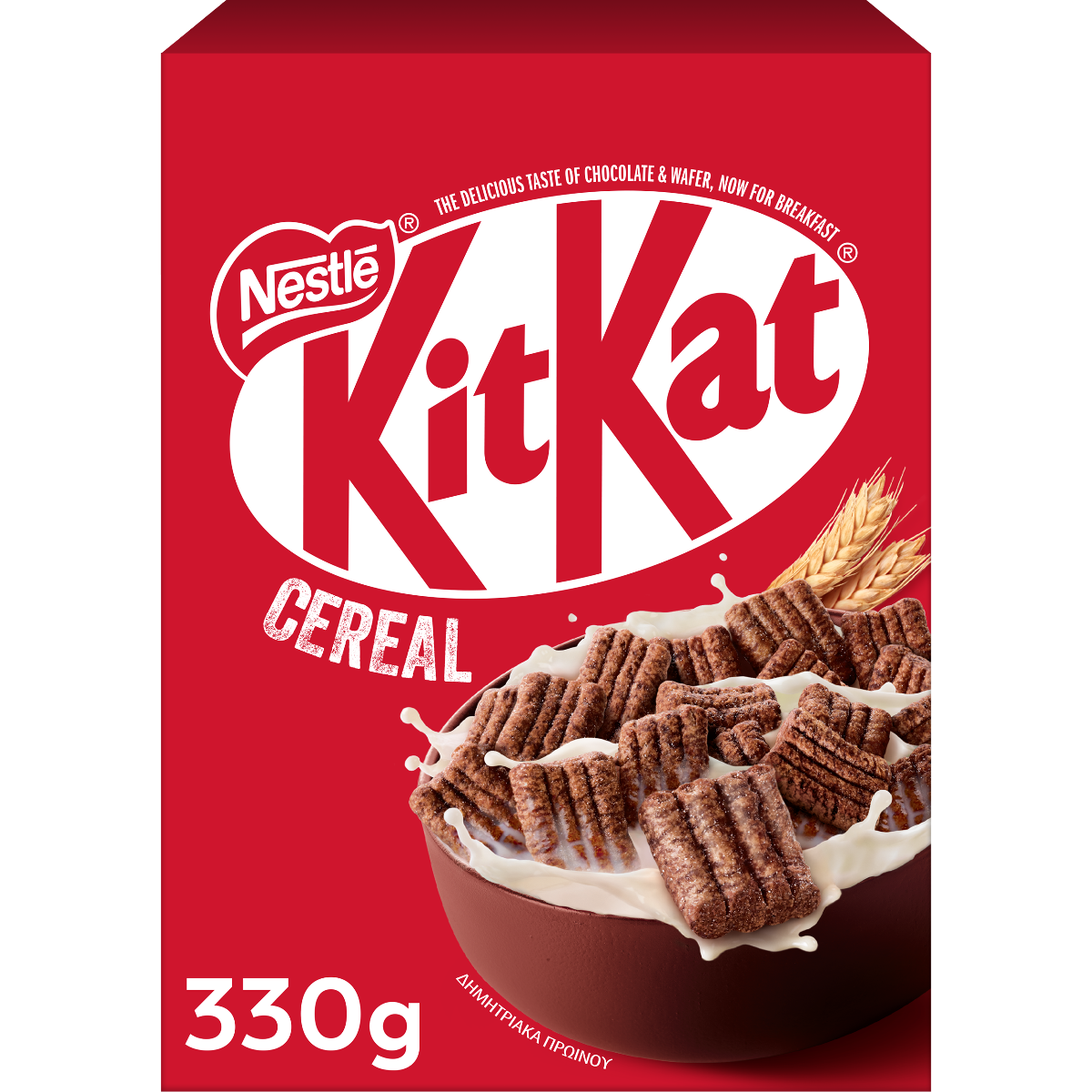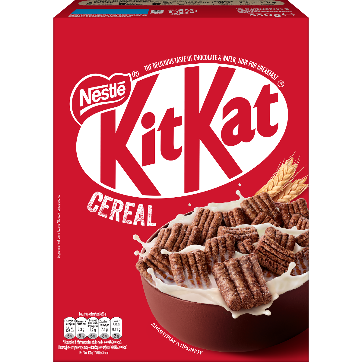 ΝΕΑ δημητριακά ΚΙΤΚΑΤ 330g! Ο μοναδικός γευστικός συνδυασμός KITKAT πλέον και σε δημητριακά, ήρθε για να συναρπάσει το πρωινό μικρών και μεγάλων. Τραγανά δημητριακά με επικάλυψη με σοκολάτα γάλακτος και γεύση απολαυστικής γκοφρέτας. Τώρα με τα KITKAT δημητριακά, έχεις έναν καλό λόγο να ξυπνήσεις το πρωί.