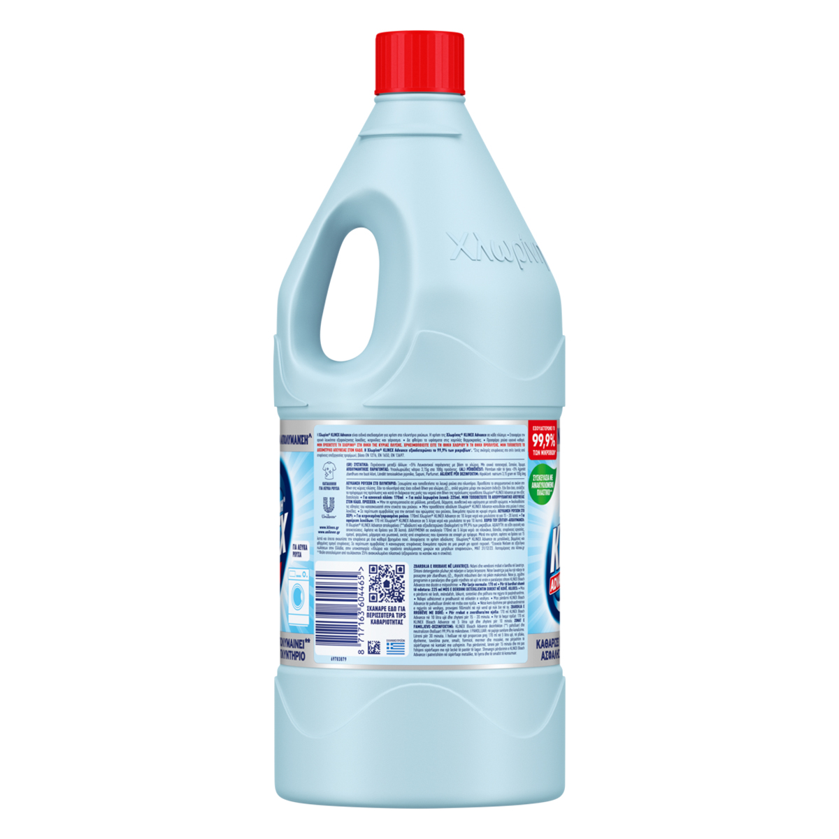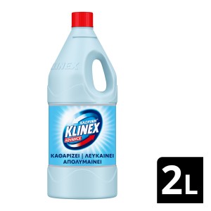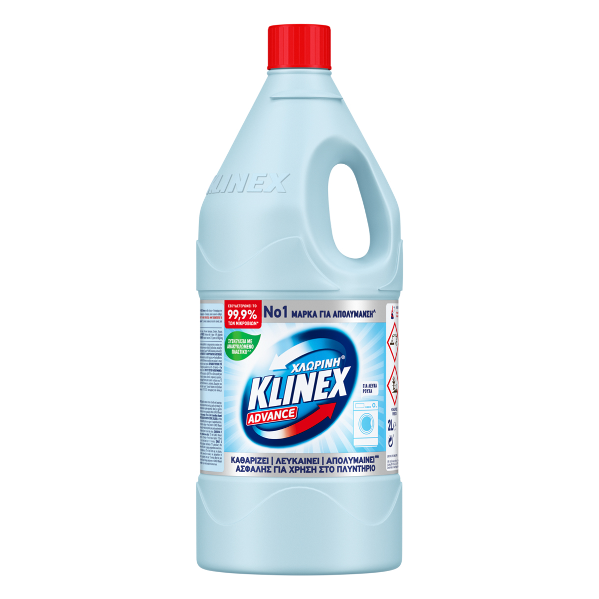 H Χλωρίνη® Klinex Advance με ειδικά σχεδιασμένη σύνθεση επαναφέρει την αρχική λευκότητα των ρούχων, ενώ είναι η μόνη εξειδικευμένη Χλωρίνη για χρήση στο πλυντήριο ρούχων. Χρησιμοποιείστε τη σε κάθε πλύση με λευκά, εξαφανίστε λεκέδες, κιτρινίλες και γάργιασμα. Η Χλωρίνη Klinex Advance δε φθείρει τα υφάσματα στις χαμηλές θερμοκρασίες, ενώ εξουδετερώνει το 99,9% των μικροβίων χαρίζοντας υγιεινή καθαριότητα στα ρούχα όλης της οικογένειας! * Βάσει εργαστηριακών τεστ ΕΝ. **Χρησιμοποιείτε τα βιοκτόνα προϊόντα με ασφαλή τρόπο. Διαβάζετε πάντοτε την ετικέτα και τις πληροφορίες σχετικά με το προϊόν πριν από τη χρήση.