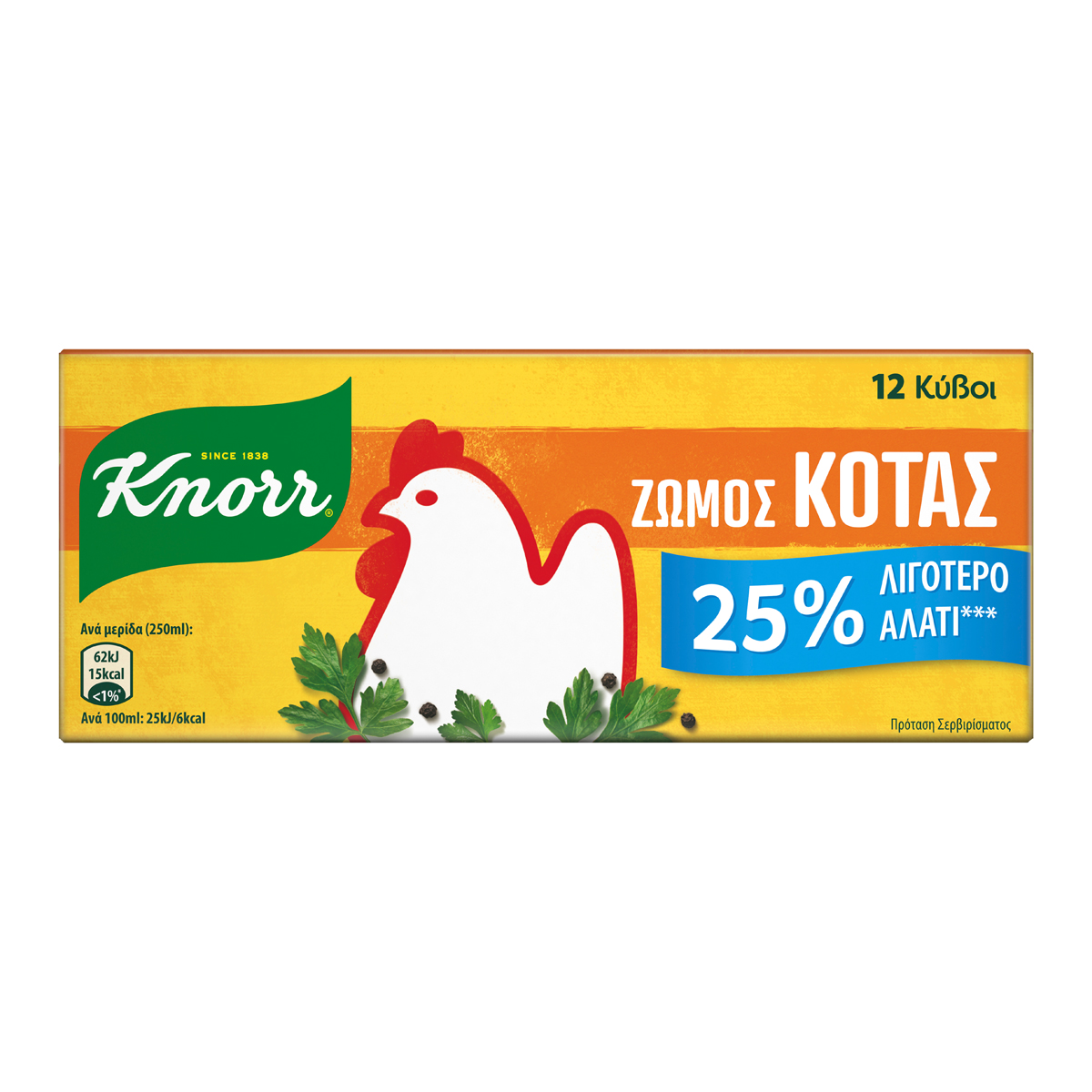 Knorr Κύβοι Ζωμού Κότας Με Λιγότερο Αλάτι 12 Τεμάχια 109 gr