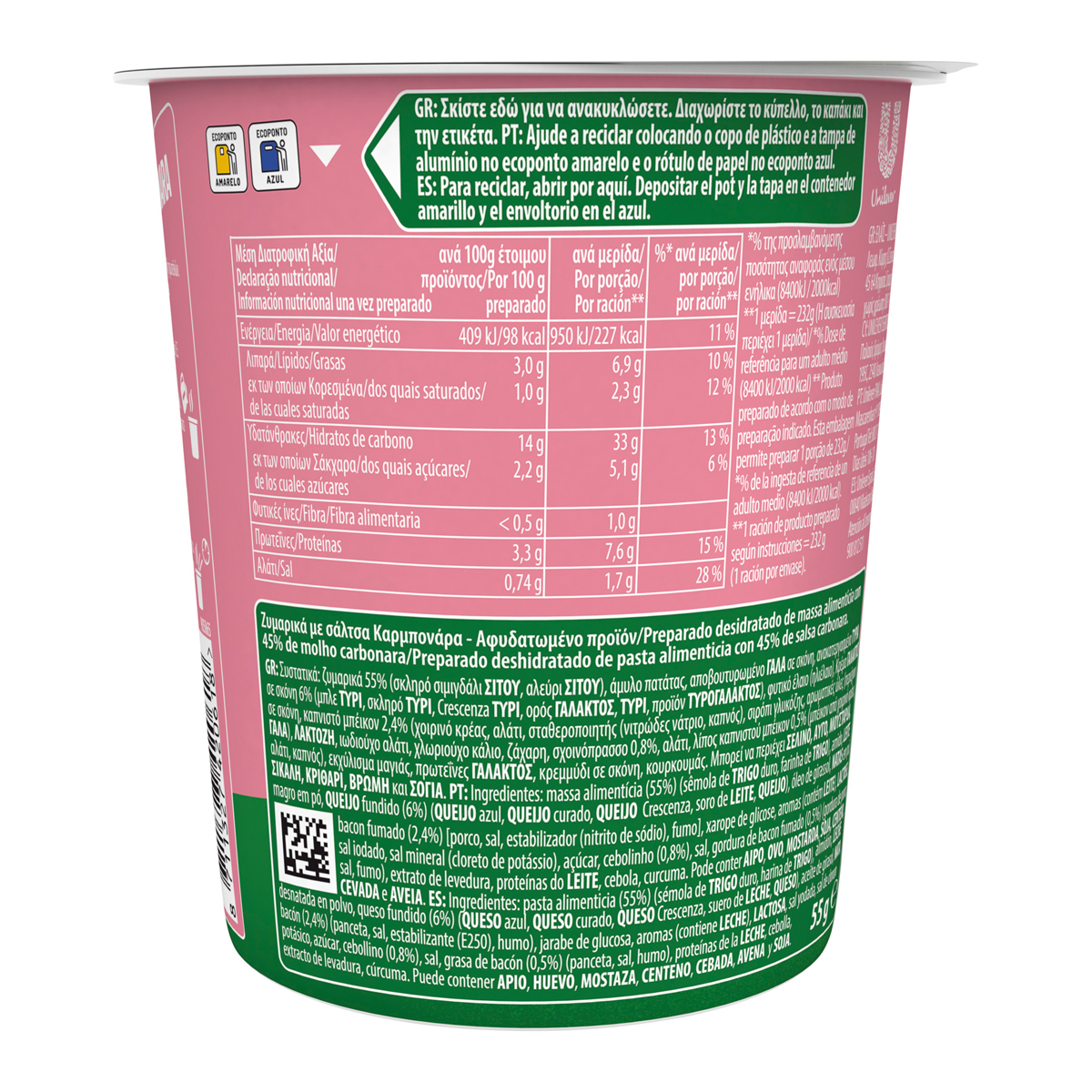 Όταν ψάχνετε ένα γρήγορο και χορταστικό snack, ένα από τα Knorr Pasta Snack Pots είναι η ιδανική λύση. Έτοιμο εύκολα και γρήγορα, χρειάζεστε μόνο ζεστό νερό και ένα πιρούνι για να απολαύσετε λαχταριστή μακαρονάδα μέσα σε μόνο 5'! Μπορείτε να το απολαύσετε στο σπίτι, το γραφείο, τη σχολή, το ταξίδι ή όπου και εάν βρίσκεστε.Το Knorr Pasta Snack Pot Carbonara είναι η νέα εκδοχή της κλασικής και αγαπημένης καρμπονάρα.