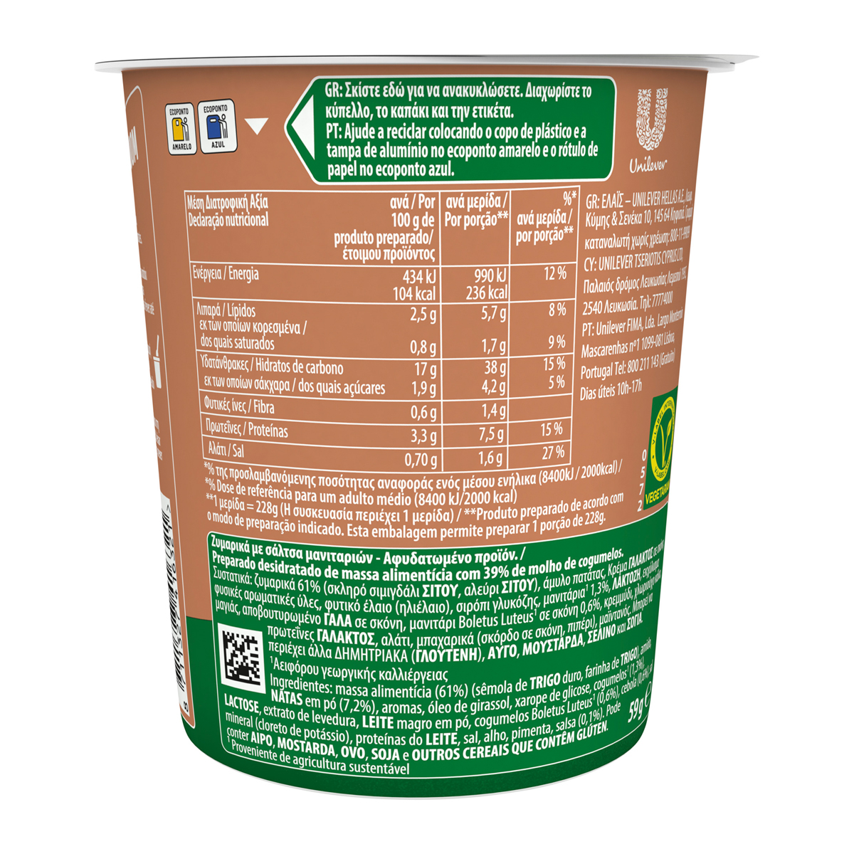 Όταν ψάχνετε ένα γρήγορο και χορταστικό snack, ένα από τα Knorr Pasta Snack Pots είναι η ιδανική λύση. Έτοιμο εύκολα και γρήγορα, χρειάζεστε μόνο ζεστό νερό και ένα πιρούνι για να απολαύσετε λαχταριστή μακαρονάδα μέσα σε μόνο 5'! Μπορείτε να το απολαύσετε στο σπίτι, το γραφείο, τη σχολή, το ταξίδι ή όπου και εάν βρίσκεστε. Το Knorr Pasta Snack Pot Mushroom περιέχει μακαρόνια φουσίλι και πλούσια, κρεμώδη σάλτσα μανιταριών.