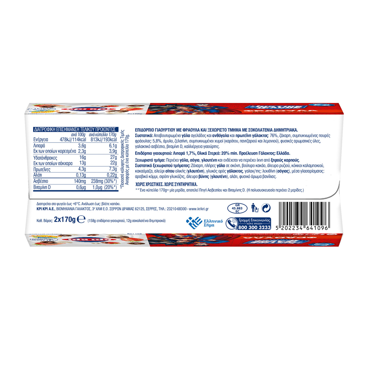Κρι Κρι Justice League Παιδικό Επιδόρπιο Γιαουρτιού Φράουλα Με Choco Loops 2 x 170 gr