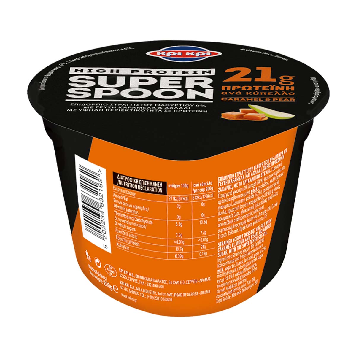 Κρι Κρι Superspoon High Protein Επιδόρπιο Γιαουρτιού Καραμέλα & Αχλάδι Χωρίς Λακτόζη Χωρίς Προσθήκη Ζάχαρης 200 gr