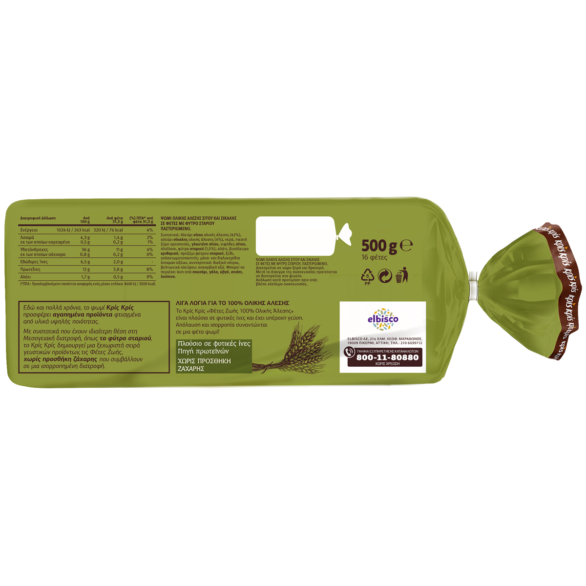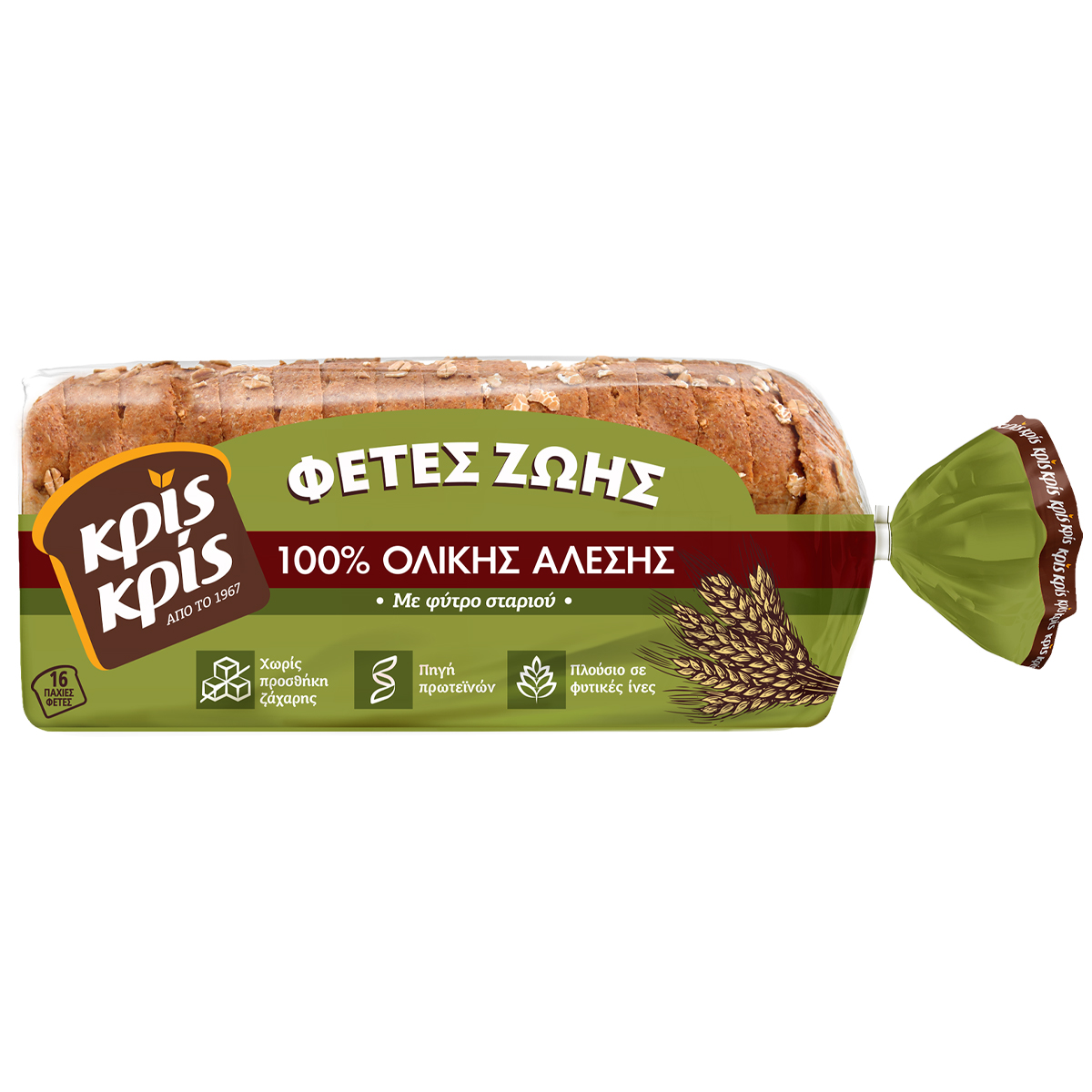 Για τους φίλους της ισορροπημένης διατροφής, το Κρίς Κρίς δημιούργησε μια ξεχωριστή σειρά προϊόντων, τις «Φέτες Ζωής», πλούσιες σε συστατικά υψηλής θρεπτικής αξίας, που έχουν ιδιαίτερη θέση στη Μεσογειακή διατροφή, όπως το εξαιρετικό παρθένο ελαιόλαδο και το φύτρο σταριού, το πιο θρεπτικό κομμάτι του σπόρου. Ιδανική επιλογή για όσους επιθυμούν ένα ψωμί υψηλής διατροφικής αξίας, χωρίς προσθήκη ζάχαρης. Η κλασική, αγαπημένη μας γεύση «Φέτες Ζωής 100% Ολικής Άλεσης», πλούσια σε φυτικές ίνες, αποτελεί πηγή πρωτεϊνών.
