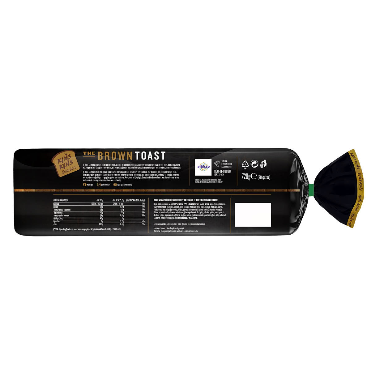 Η νέα σειρά Κρις-Κρις Selection με προσεκτικά επιλεγμένα συστατικά και διαλεγμένες συνταγές σου προσφέρει μια καθημερινή μοναδική εμπειρία απόλαυσης. To Κρίς Κρίς Selection The Brown Toast, είναι ιδανικό για όσους αναζητούν την γεύση και την ποιότητα στη καθημερινότητα τους.Είναι φτιαγμένο με αλεύρι ολικής άλεσης σίτου και σίκαλης ώστε να προσφέρει μια ισορροπημενη επιλογή, ενώ το προζύμι σίκαλης που περιέχει αναβαθμίζει το ψωμι σε γεύση και ποιότητα.