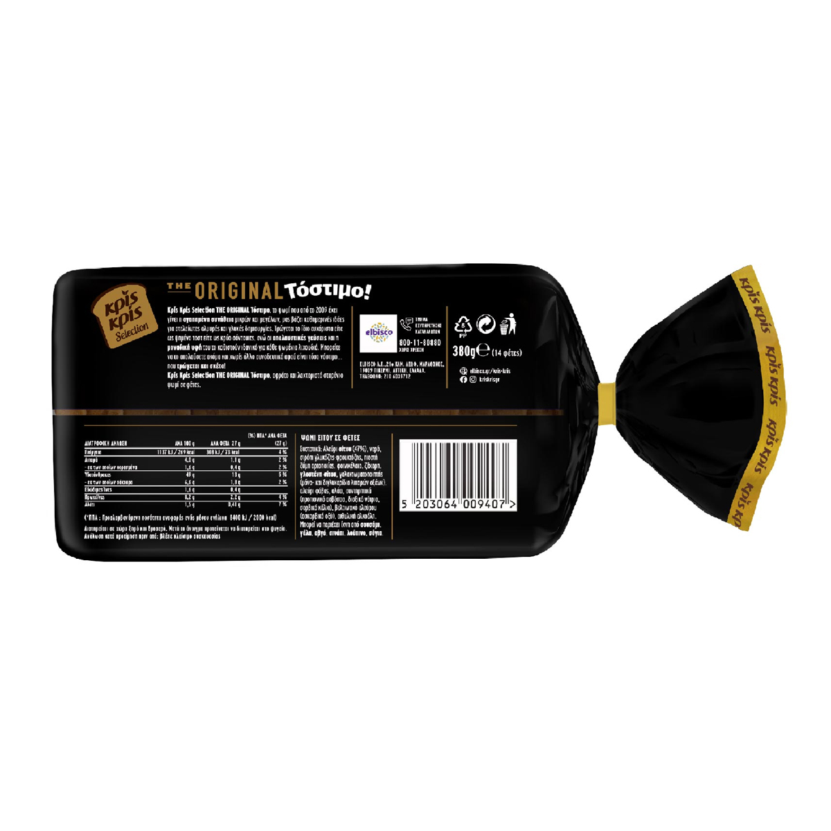 Κρίς Κρίς Selection The Original Τόστιμο, το ψωμί που από το 2009 έχει γίνει η αγαπημένη συνήθεια μικρών και μεγάλων, μας βάζει καθημερινές ιδέες για ατελείωτες αλμυρές και γλυκιές δημιουργίες. Τρώγεται το ίδιο ευχάριστα είτε ως ψημένο τοστ είτε ως κρύο σάντουιτς, ενώ οι απολαυστικές γεύσεις και η μοναδική υφή του το καθιστούν ιδανικό για κάθε ψωμένια λιχουδιά. Μπορείτε να το απολαύσετε ακόμα και χωρίς άλλο συνοδευτικό αφού είναι τόσο νόστιμο…που τρώγεται και σκέτο!