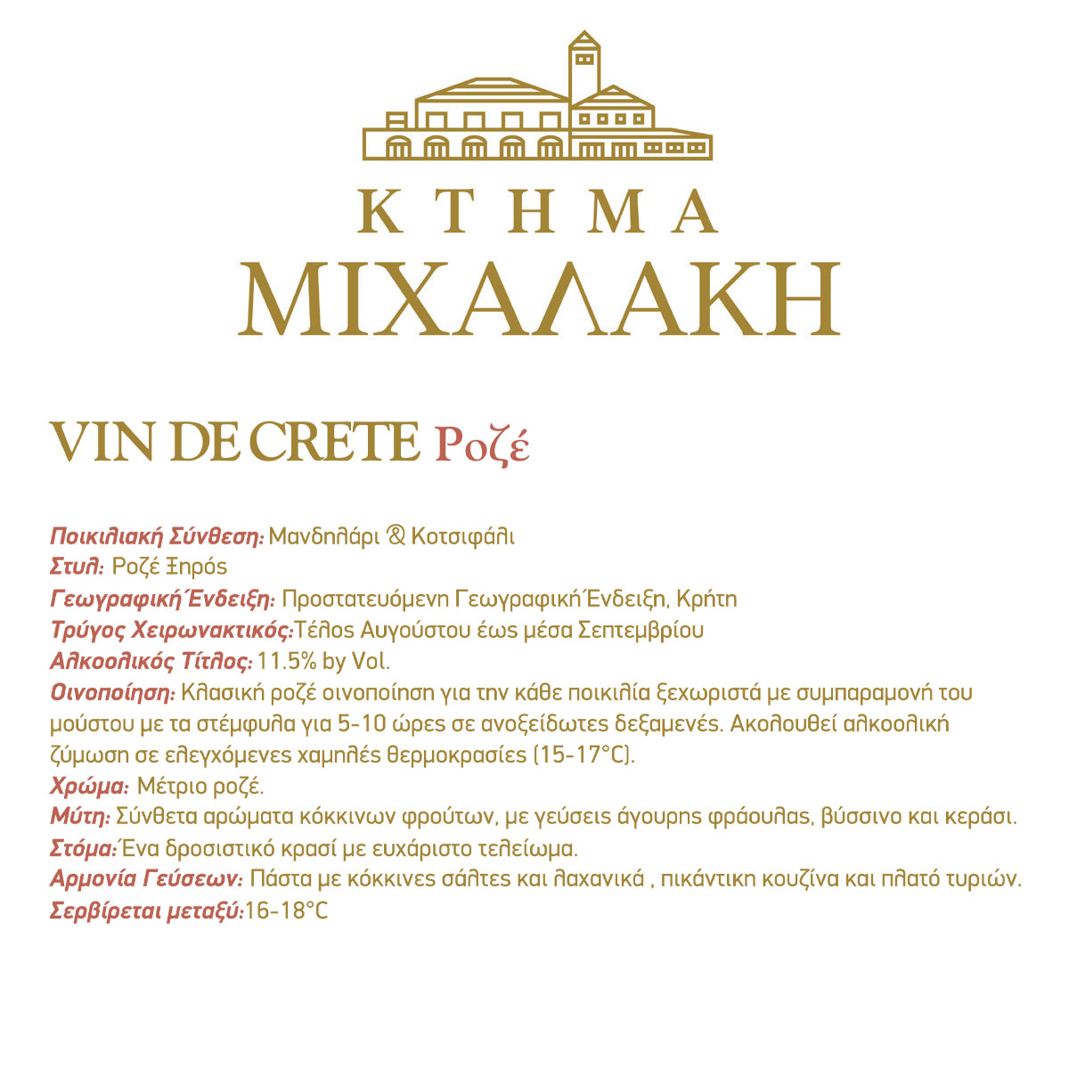 Κρητικός Vin De Crete Κρασί Ροζέ Ξηρό 750 ml