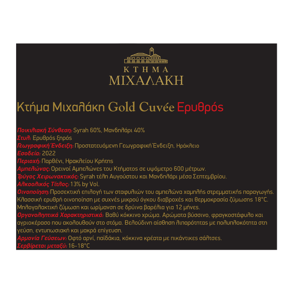 Κτήμα Μιχαλάκη Κρασί Gold Cuvee Ερυθρό 750 ml