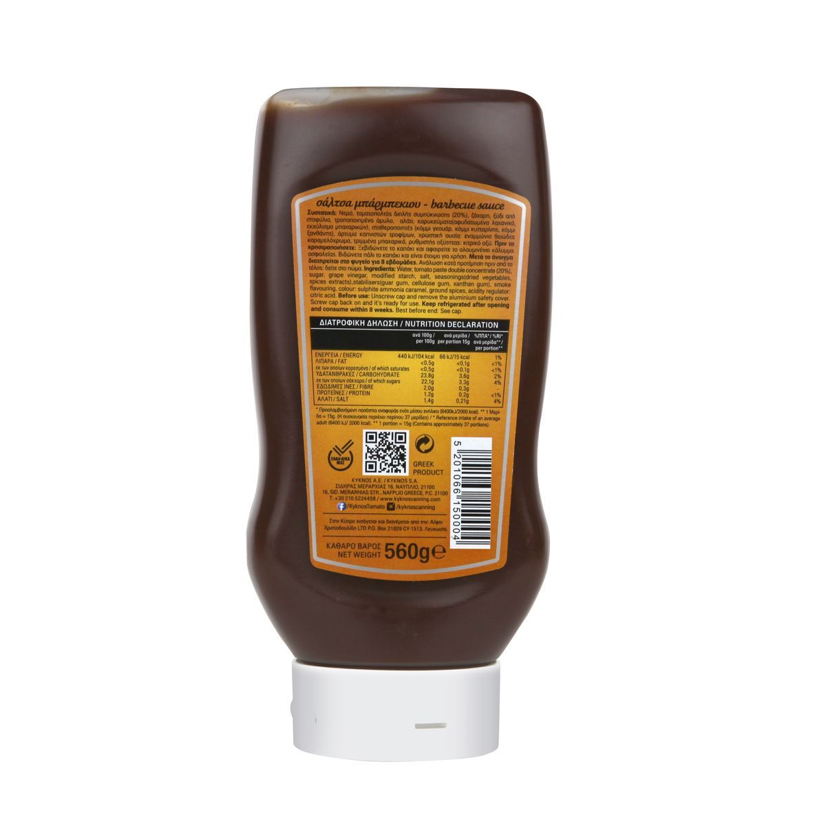Η barbeque sauce στα ελληνικά. Πρόκειται για μία κλασική συνταγή, πλούσια σε τοματοπολτό, ανθεκτική στο ψήσιμο, παχύρευστη με έντονο σκουροκόκκινο χρώμα. Η ελαφριά γλυκόξινη γεύση της, την κάνουν ιδανική, όχι μόνο για αυτούσια χρήση αλλά και για πολύτιμο συστατικό μαριναρίσματος. Συνοδεύει υπέροχα όλα τα ψητά κρέατα (σαν σάλτσα ή μαρινάδα), αλλαντικά και πουλερικά. Χαμηλή σε λιπαρά, Χωρίς συντηρητικά & τεχνητές χρωστικές ύλες, Χωρίς γλουτένη, Κατάλληλη και για vegan χρήστες. Ένα προϊόν που φέρει όλες τις διατροφικές αξίες καθώς και την ποιότητα της ΚYKNOS! Σε ανάποδη πλαστική φιάλη με καπάκι που παραμένει πάντα καθαρό.