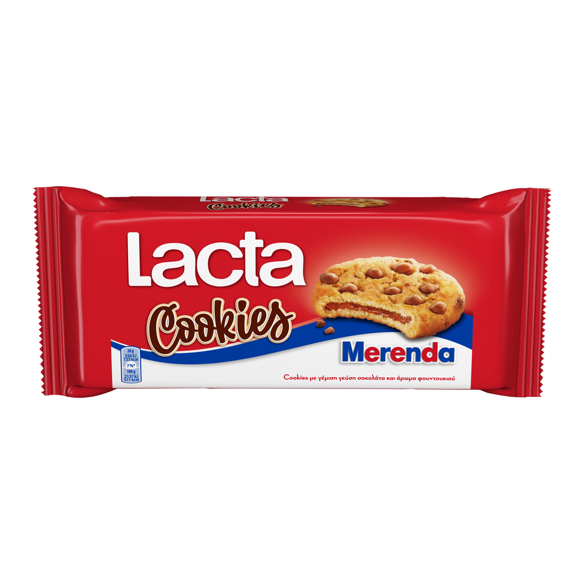 Μπισκότα cookies με σταγόνες σοκολάτας γάλακτος, γέμιση σοκολάτα γάλακτος και άρωμα φουντουκιού.