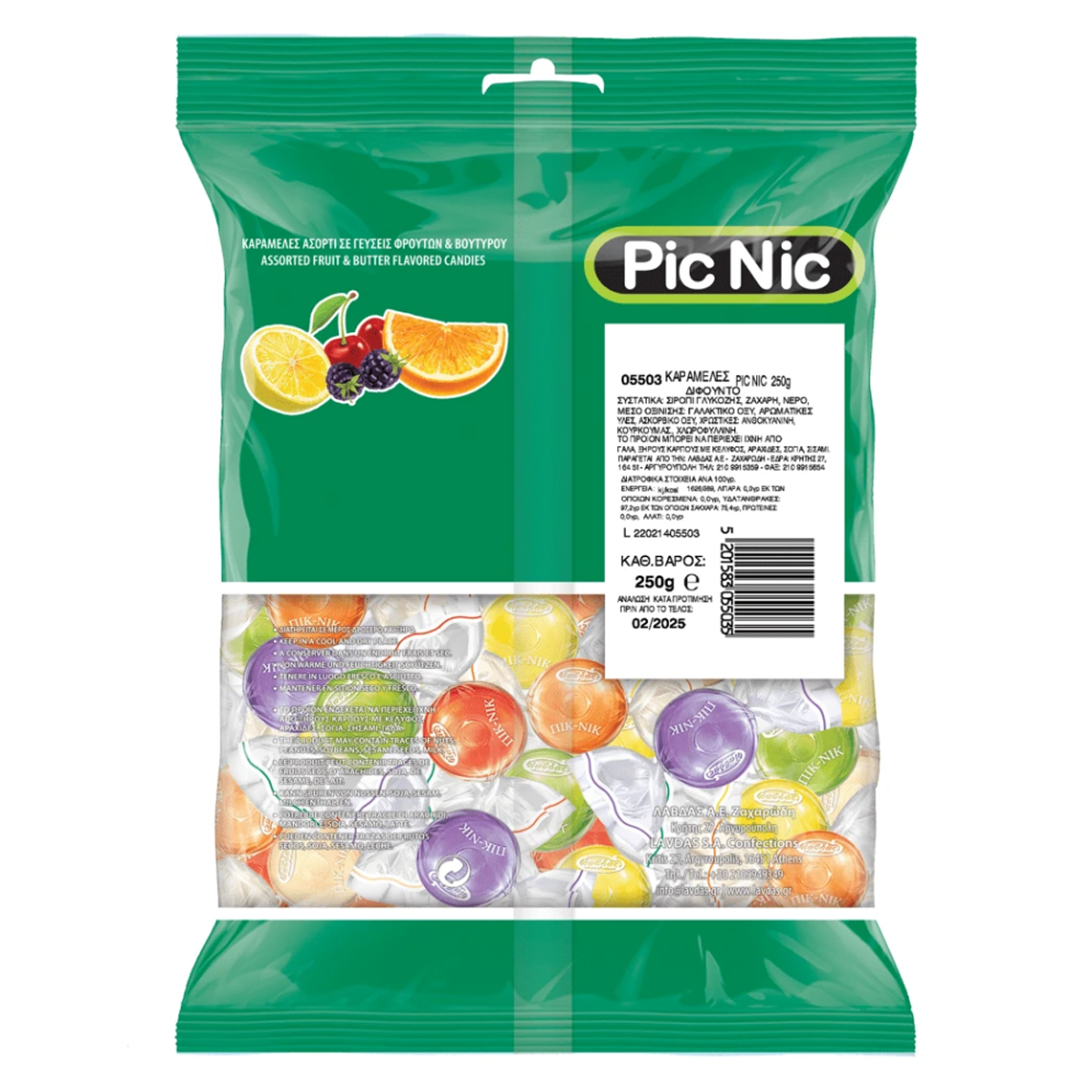 Λαβδάς Pic Nic Καραμέλες Σε Γεύσεις Φρούτων & Βουτύρου 250 gr
