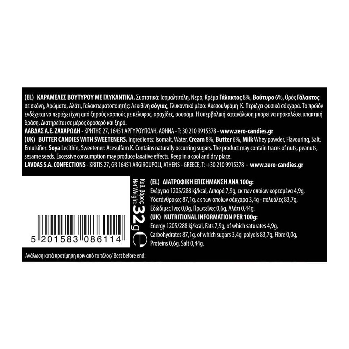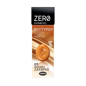 Καραμέλες ZERO Βουτύρου με 0% προσθήκη ζάχαρης. Αυθεντική πλούσια γεύση καραμέλας βουτύρου για γλυκιά ζωή χωρίς ζάχαρη. Με αληθινή κρέμα γάλακτος για βελούδινη υφή.