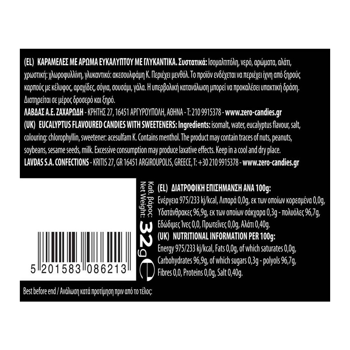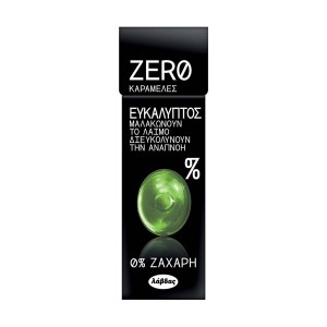Καραμέλες ZERO Ευκάλυπτος 0% ζάχαρη. Καταπραϋντικός ευκάλυπτος που μαλακώνει το λαιμό, απελευθερώνει την αναπνοή και βοηθά στην αντιμετώπιση του βήχα.