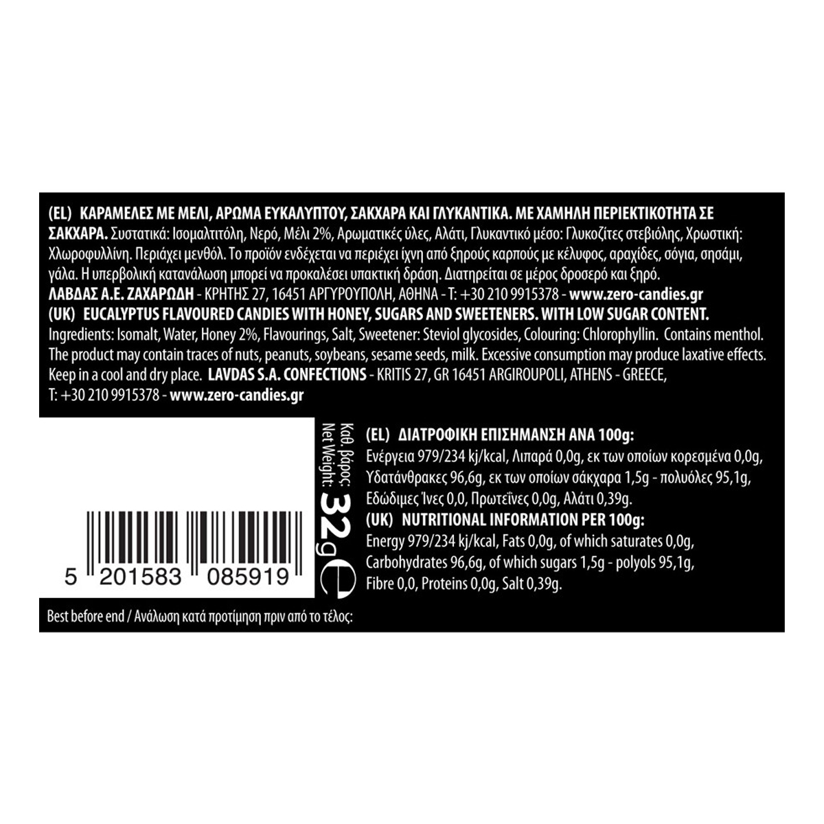 Λάβδας Zero Καραμέλες Ευκάλυπτος Μέλι 0% Ζάχαρη 32 gr