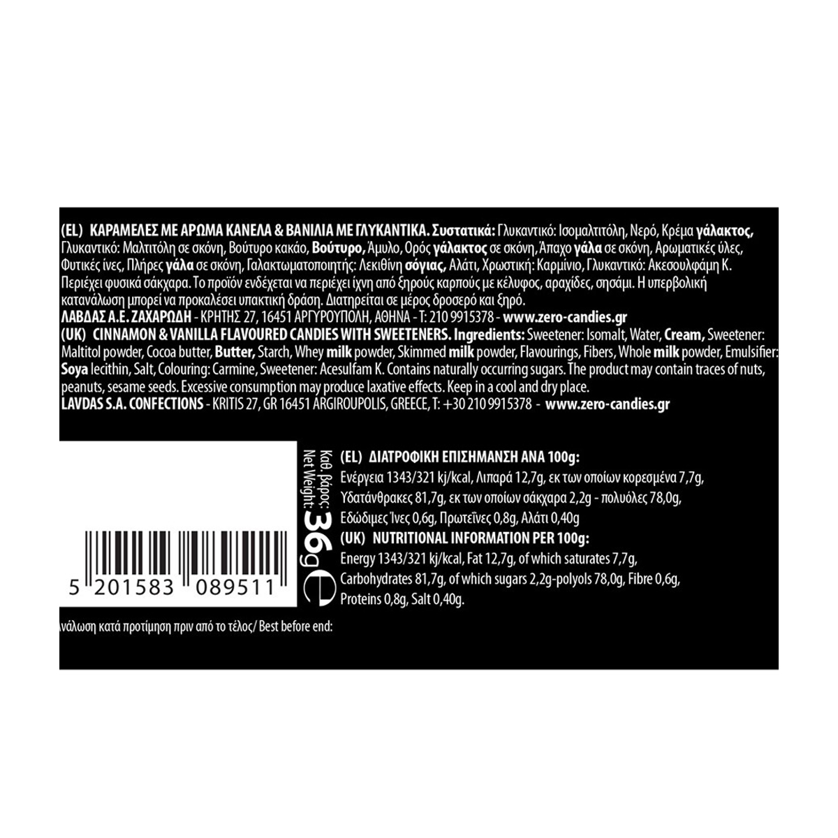 Λάβδας Zero Καραμέλες Κανέλα & Βανίλια 0% Ζάχαρη 36 gr