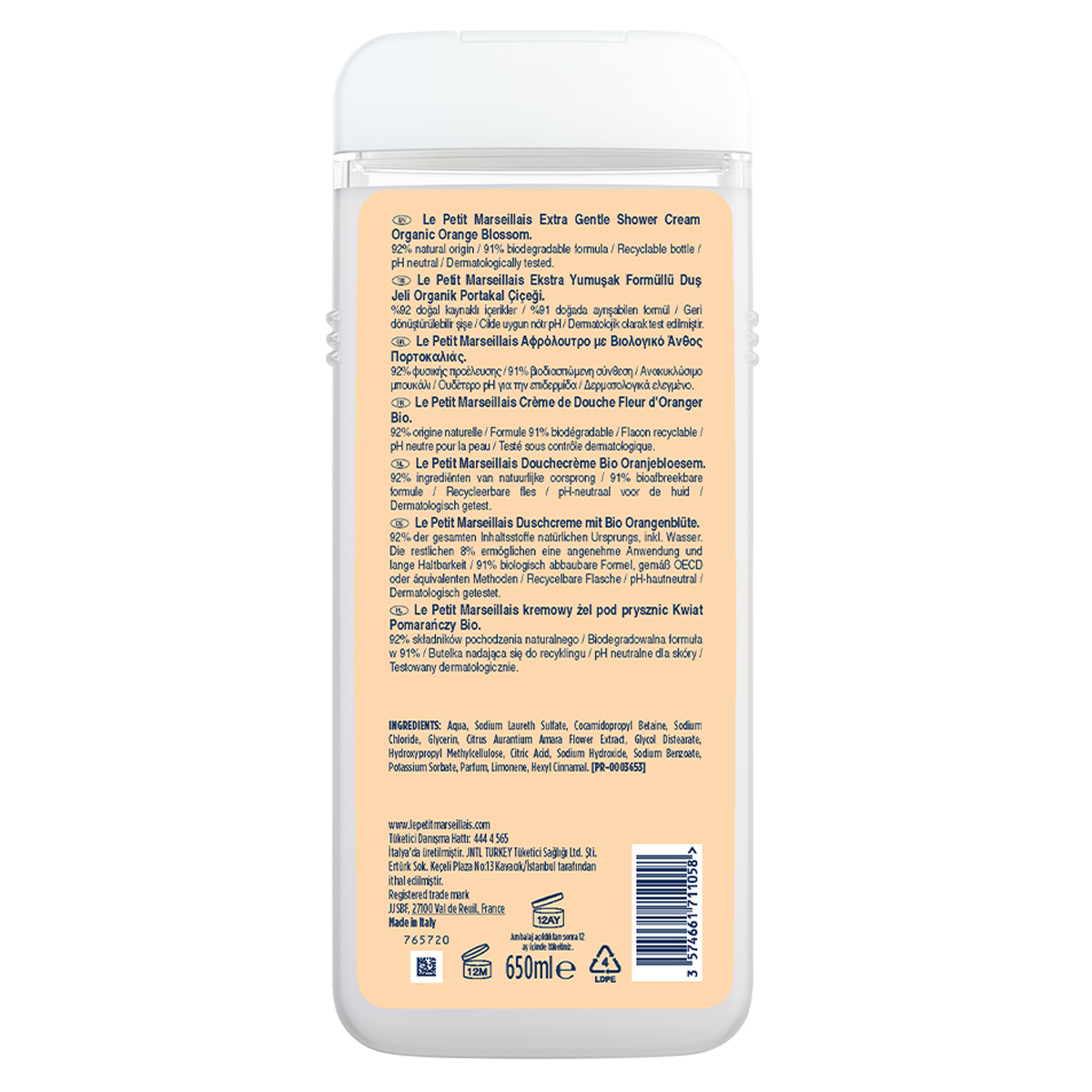 Le Petit Marseillais® Ενυδατικό Κρεμώδες Αφρόλουτρο Με Άνθη Πορτοκαλιάς 650 ml. Τα άνθη πορτοκαλιάς λευκά και πολύ αρωματικά απελευθερώνουν ένα γλυκό και ελαφρύ άρωμα. Την άνοιξη, τα άνθη πορτοκαλιάς του Le Petit Marseillais συλλέγονται με το χέρι κάνω από τον ευχάριστο μεσογειακό ήλιο πριν εγχυθούν. Εξαιρετικά Απαλή Σύνθεση. Αυτό το κρεμώδες αφρόλουτρο καθαρίζει απαλά την επιδερμίδα σας. Είναι απαλό και ο αφρός του που ξεβγάζεται εύκολα αποκαλύπτει ένα απαλό και λουλουδένιο άρωμα. Χαρίζει στην επιδερμίδα σας θρέψη απαλότητα και ενυδάτωση. Ουδέτερο PH για την επιδερμίδα. Δερματολογικά ελεγμένο. Βάση καθαρισμού φυτικής προέλευσης και βιοδιασπώμενο.* Τα συστατικά της βάσης καθαρισμού είναι εύκολα βιοδιασπώμενα