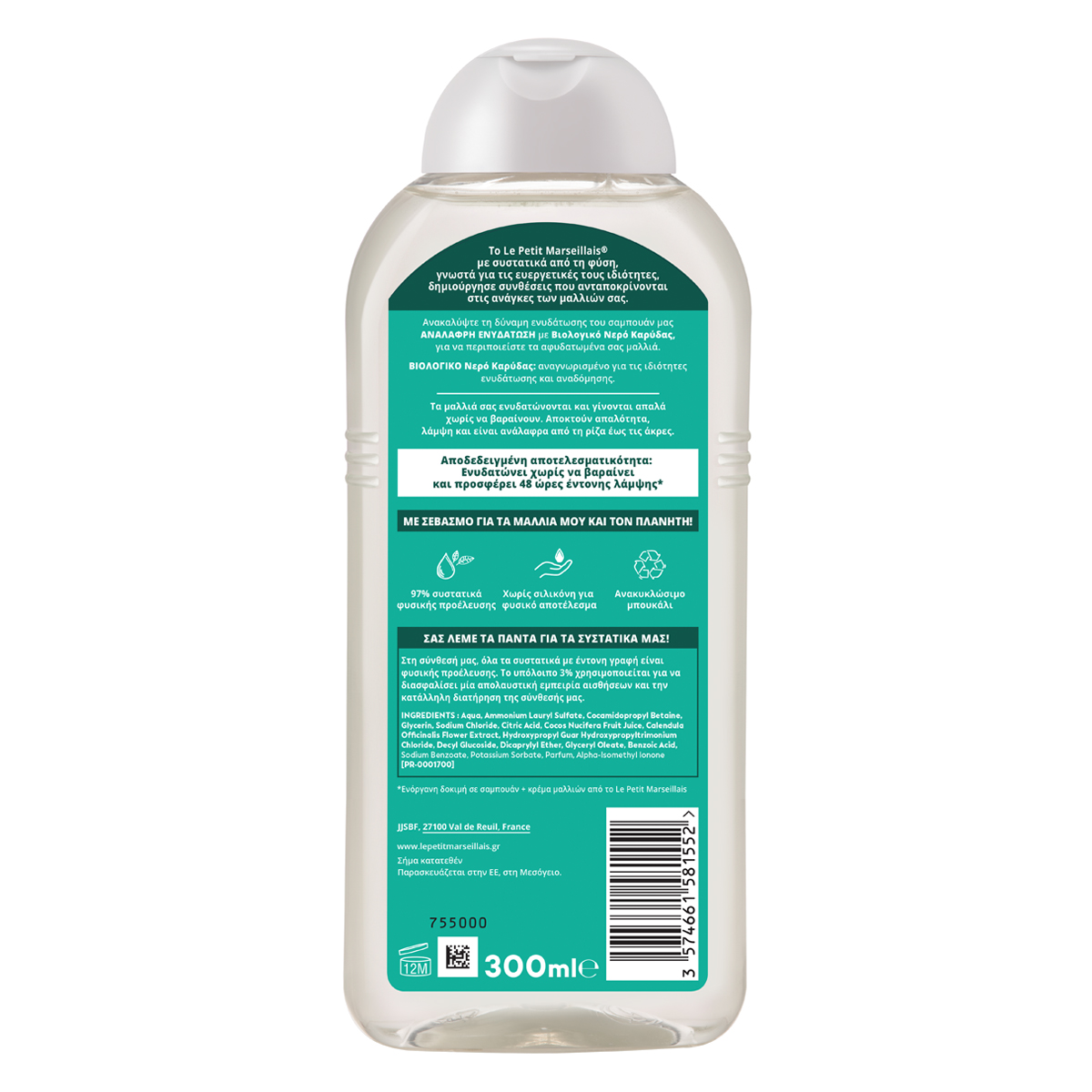 Σαμπουάν Le Petit Marseillais® ΕΝΥΔΑΤΩΣΗ με Εκχύλισμα ΒΙΟΛΟΓΙΚΗΣ Καλέντουλας και ΒΙΟΛΟΓΙΚΟ Νερό Καρύδας για αφυδατωμένα μαλλιά και ξηρό τριχωτό της κεφαλής. Το τριχωτό της κεφαλής Ανακουφίζεται & Ενυδατώνεται, Απαλά μαλλιά χωρίς να βαραίνουν, Αποκαθιστά την Απαλότητα, τη Λάμψη & τη Φωτεινότητα από τη ρίζα ως τις άκρες.