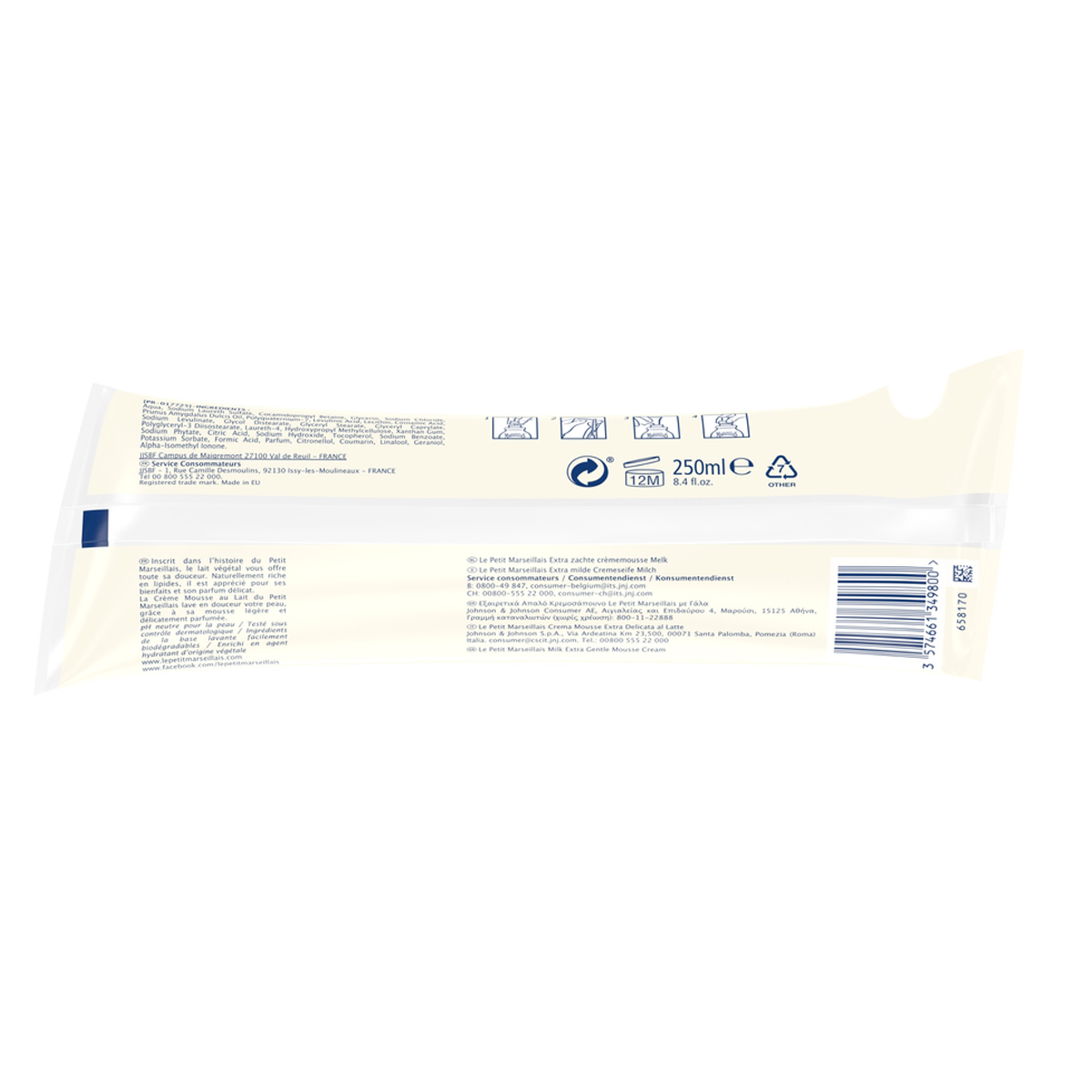 Εξαιρετικά Απαλό Κρεμοσάπουνο Le Petit Marseillais® με Γάλα. Με φυτικό Γάλα προσφέρει όλη την απαλότητά του. Φυσικό , πλούσιο σε λιπίδια , πλούσιο σε οφέλη για την περιποίηση & ενυδάτωση της επιδερμίδας. Συστατικά εύκολο βιοδιασπώμενα. Εμπλουτισμένο με ενυδατικό παράγοντα φυτικής προέλευσης.
