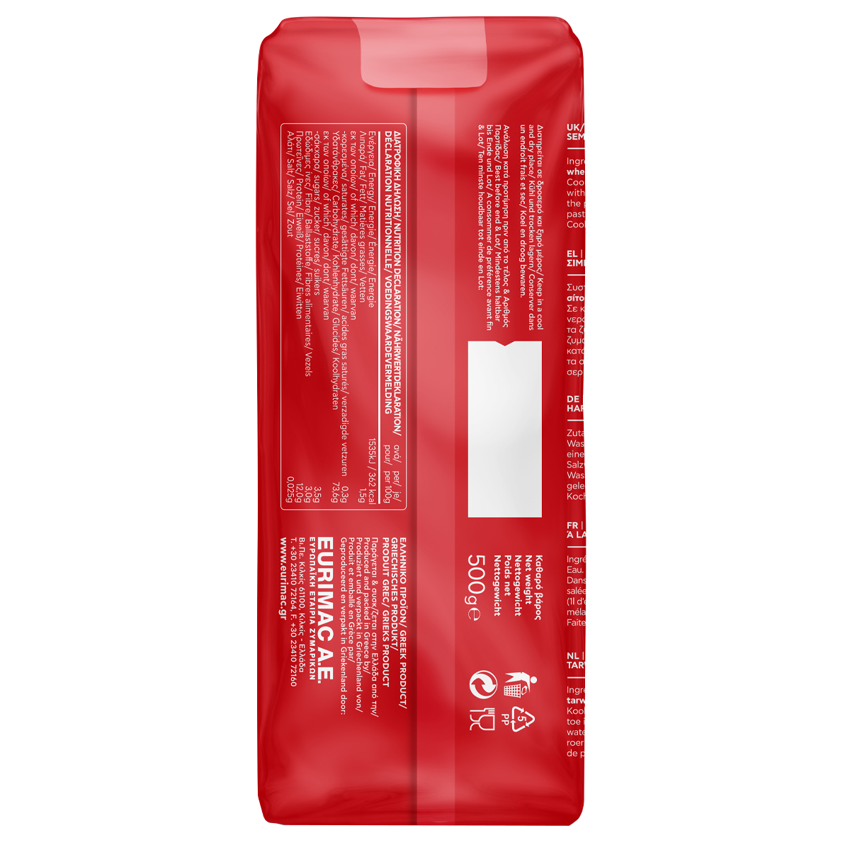 Προϊόν ελληνικότατο αφο'υ το σχήμα τους σημαίνει γιουβετσι, θυμίζοντας σε όλους κυριακάτικα οικογενειακά τραπεζώματα. Μόλις τα τελευταία χρόνια, άρχισαν να το δοκιμάζουν στο εξωτερικό και να τους αρέσει. Αγαπάει τις κόκκινες σ'αλτσες κι οι γιαγιάδες που μεγαλώνουν εγγόνια το ξέρουν καλά. Από 100% Ελληνικά επιλεγμένα σκληρά σιτάρια. Έτοιμα σε 9-11 λεπτά.