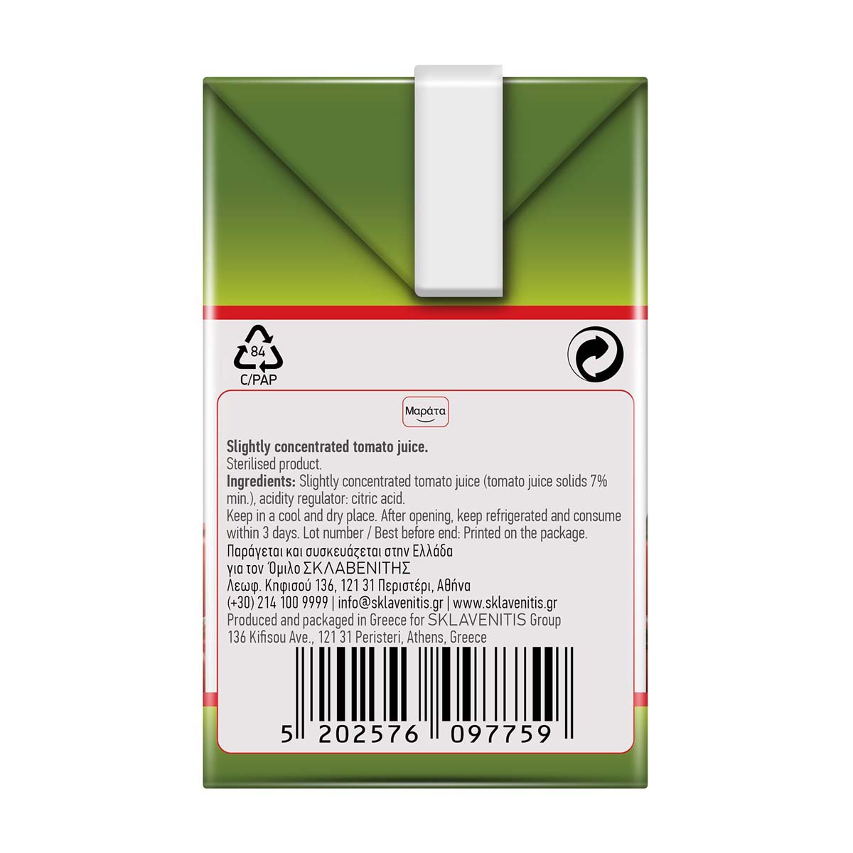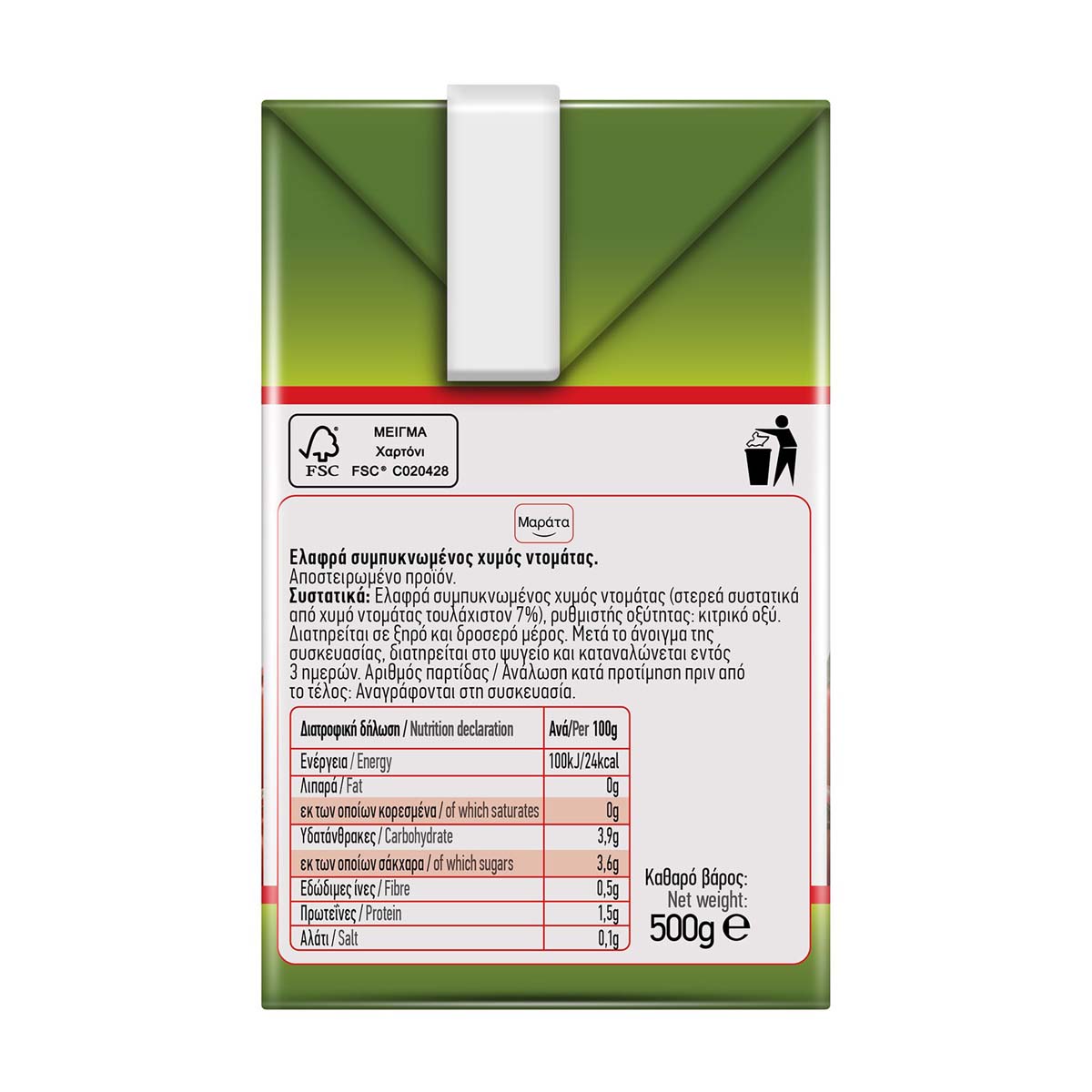 Χυμός ντομάτας Μαράτα από εκλεκτές ελληνικές ντομάτες.