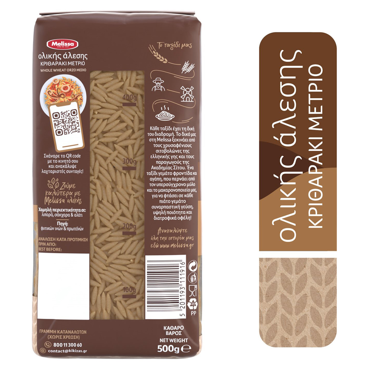Τα ζυμαρικά Melissa κριθαράκι μέτριο ολικής άλεσης φέρνουν κοντά σας όλα τα οφέλη μιας υγιεινής και ισορροπημένης διατροφής. Έχουν πλούσια γεύση καθώς παρασκευάζονται από ολόκληρο τον καρπό του σιταριού και είναι πηγή φυτικών ινών με χαμηλά λιπαρά.