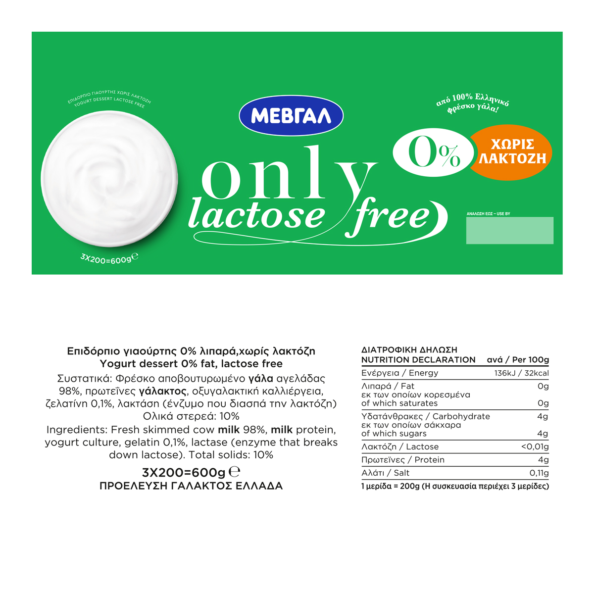 Με το Only Lactose Free μπορείς να απολαύσεις την πλούσια γεύση του γιαουρτιού χωρίς λακτόζη. Ένα ελαφρύ γεύμα για όσους προσέχουν και δεν θέλουν να επιβαρύνουν τον εαυτό τους με θερμίδες. Ιδανικό γιαάτομα με δυσανεξία στη λακτόζη.