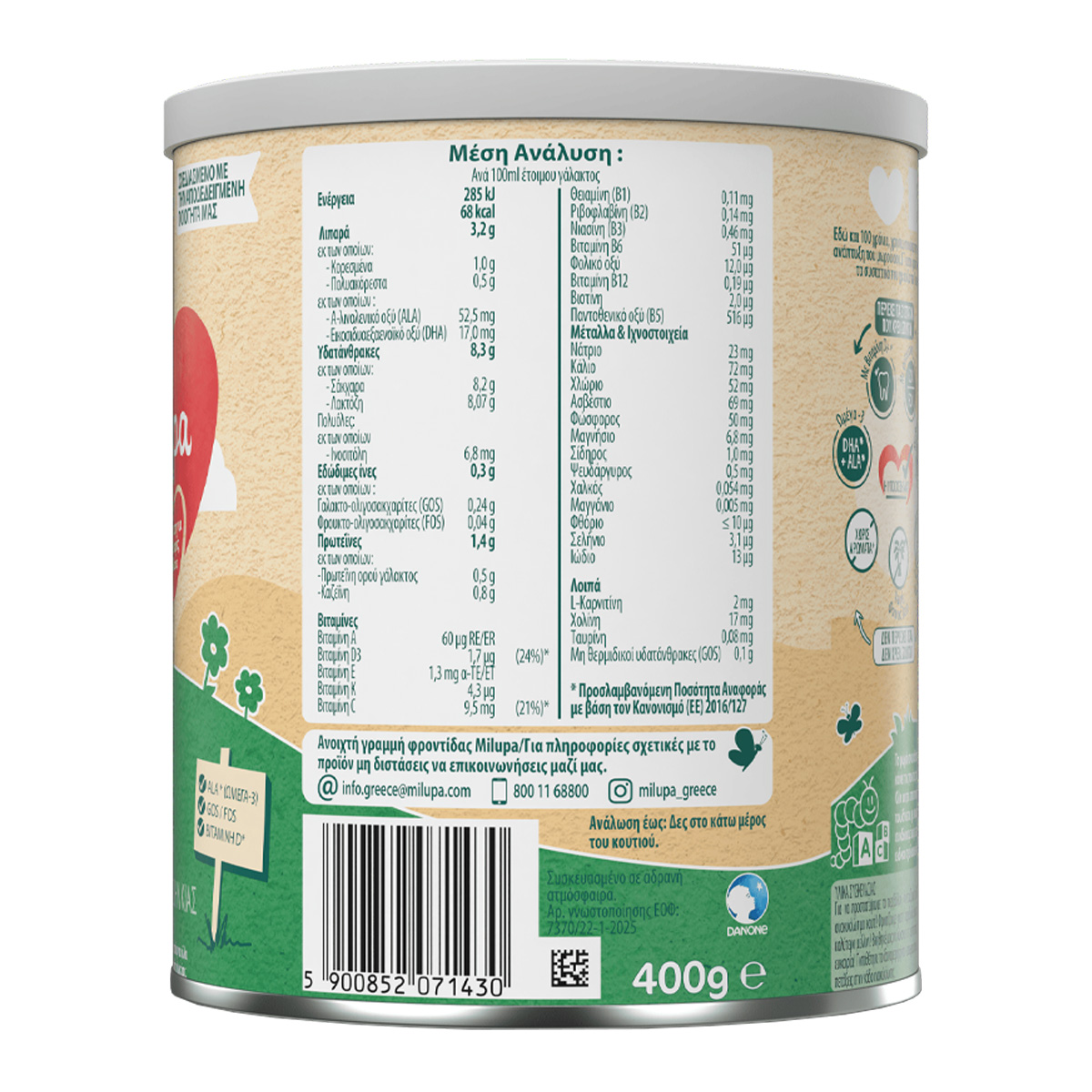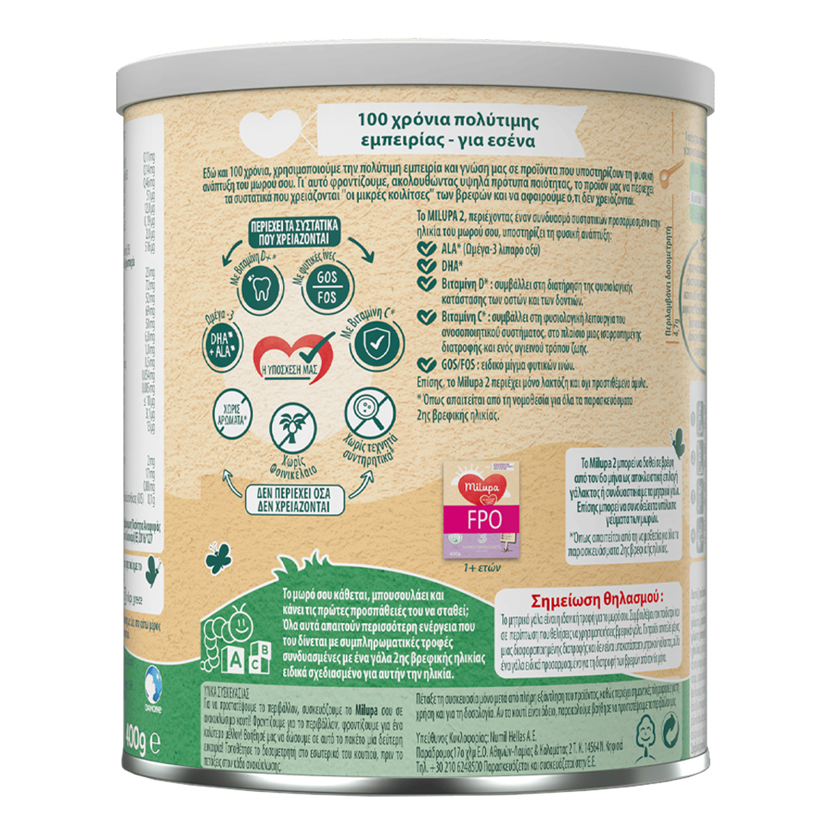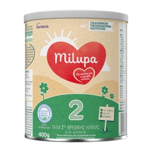 Όλα αυτά απαιτούν περισσότερη ενέργεια, που του δίνετε με συμπληρωματικές τροφές συνδυασμένες με ένα γάλα 2ης βρεφικής ηλικίας, ειδικά σχεδιασμένο για αυτή την ηλικία. Το Milupa 2 περιέχει συνδυασμό θρεπτικών συστατικών που ενισχύουν τη φυσική ανάπτυξη των βρεφών.