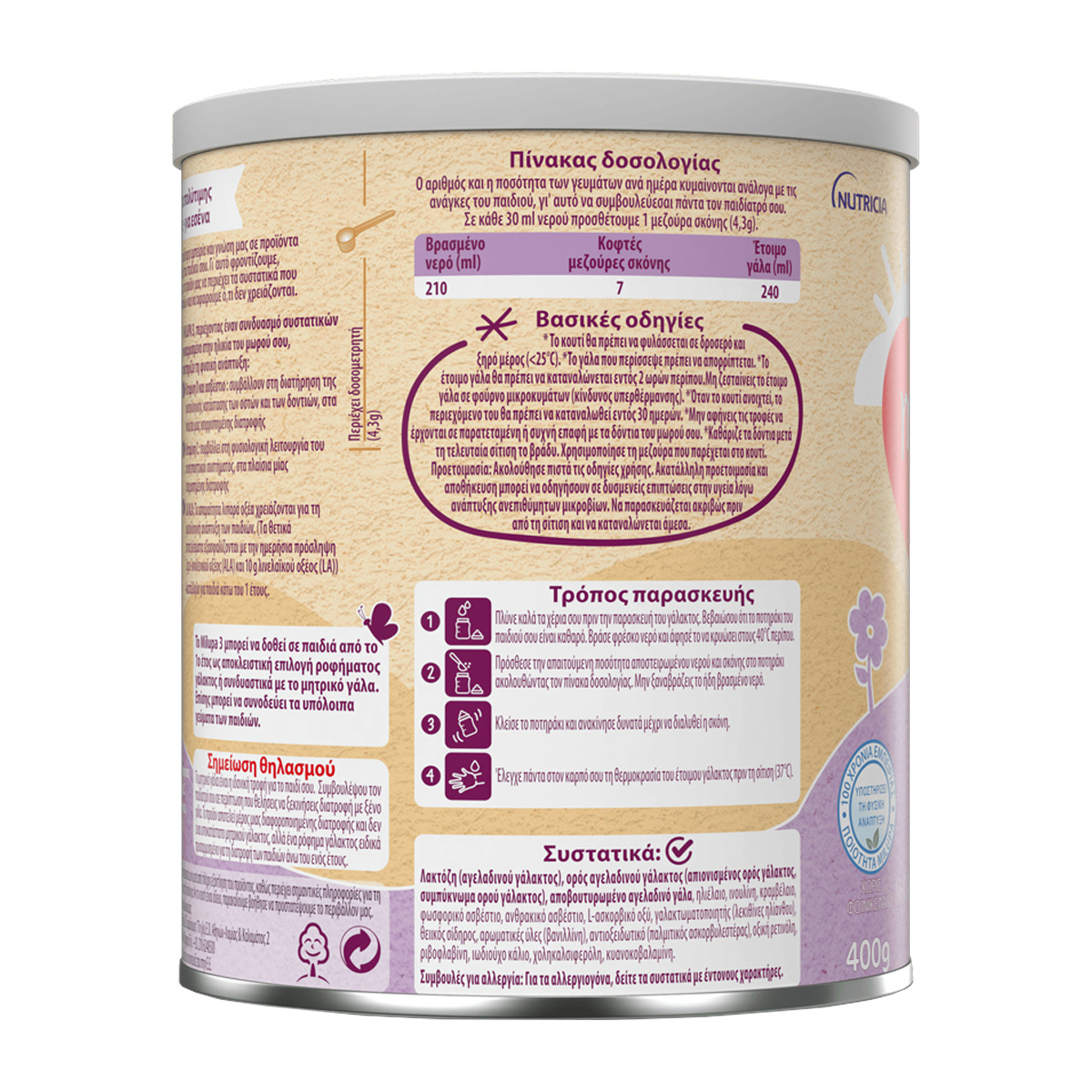 Το μητρικό γάλα είναι η ιδανική τροφή για το μωρό σου. Συμβουλέψου τον παιδίατρο σου σε περίπτωση που θελήσεις να ξεκινήσεις διατροφή με ξένο γάλα. Το προϊόν αποτελεί μέρος μιας διαφοροποιημένης διατροφής και δεν είναι υποκατάστατο μητρικού γάλακτος αλλά ένα γάλα ειδικά προσαρμοσμένο για τη διατροφή των παιδιών από το 1ο έτος.