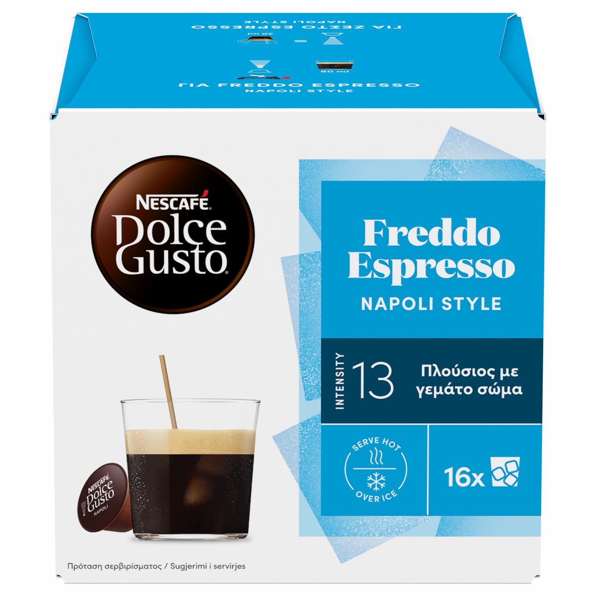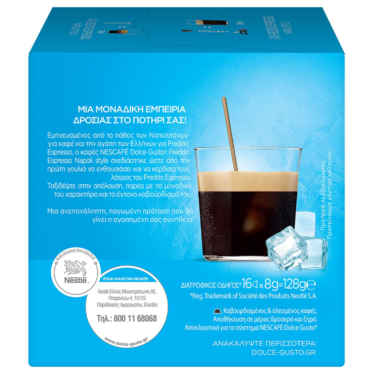 ΜΙΑ ΜΟΝΑΔΙΚΗ ΕΜΠΕΙΡΙΑ ΔΡΟΣΙΑΣ ΣΤΟ ΠΟΤΗΡΙ ΣΟΥ!Εμπνευσμένος από το πάθος των Ναπολιτάνων για καφέ και την αγάπη των Ελλήνων για Freddo Espresso, ο καφές NESCAFE® DOLCE GUSTO® Freddo Espresso Napoli style σχεδιάστηκε ώστε από την πρώτη γουλιά να ενθουσιάσει και να κερδίσει του λάτρεις του Freddo Espresso.Ταξίδεψε στην απόλαυση, παρέα με το μοναδικό του χαρακτήρα και το έντονο καβούρδισμά του.Ένα ιδιαίτερα έντονο χαρμάνι (ένταση 13) από ποικιλίες καφέ που ευδοκιμούν στην Κολομβία, τη Βραζιλία και την Ουγκάντα. Μια ανεπανάληπτη, παγωμένη πρόταση που θα γίνει η αγαπημένη σου συνήθεια! Συμβατές με μηχανή Dolce Gusto.