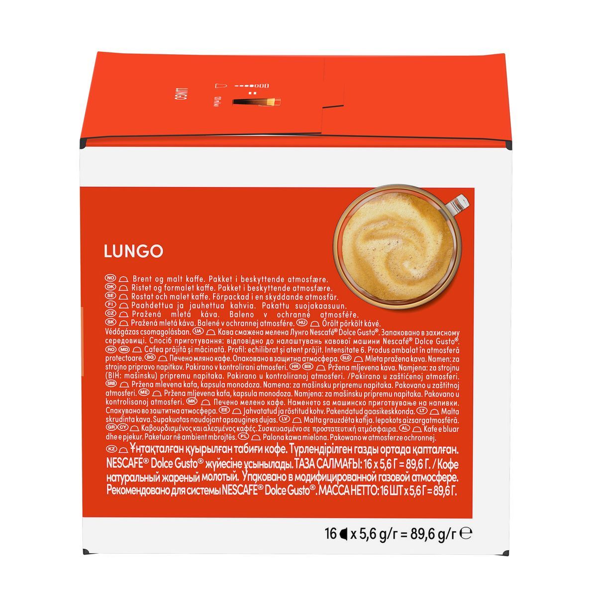 Ο καφές NESCAFE® Dolce Gusto® Lungo είναι ένας απαλός και μέτρια καβουρδισμένος καφές. Lungo στα ιταλικά σημαίνει "μακρύς καφές". Για εσένα, σημαίνει περισσότερος χρόνος για να απολαύσεις αυτό το εξαιρετικά ισορροπημένο φλυτζάνι με τις νότες καβουρδισμένου καφέ και λεπτές νότες φραγκοστάφυλου. Απόλαυσε αυτόν τον υπέροχο καφέ που σερβίρεται σε μεγάλο φλυτζάνι (120ml).