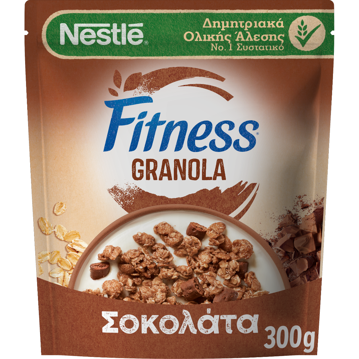 Τραγανές μπουκιές δημητριακών με νιφάδες βρώμης ολικής άλεσης, σοκολάτα, ασβέστιο και σίδηρο. Νέα Fitness Granola Chocolate! Δώσε γεύση στα πρωινά σου με τραγανές μπουκιές δημητριακών και απολαυστική σοκολάτα! Περιέχει 46% βρώμη ολικής άλεσης και αποτελεί πηγή ασβεστίου και σιδήρου!