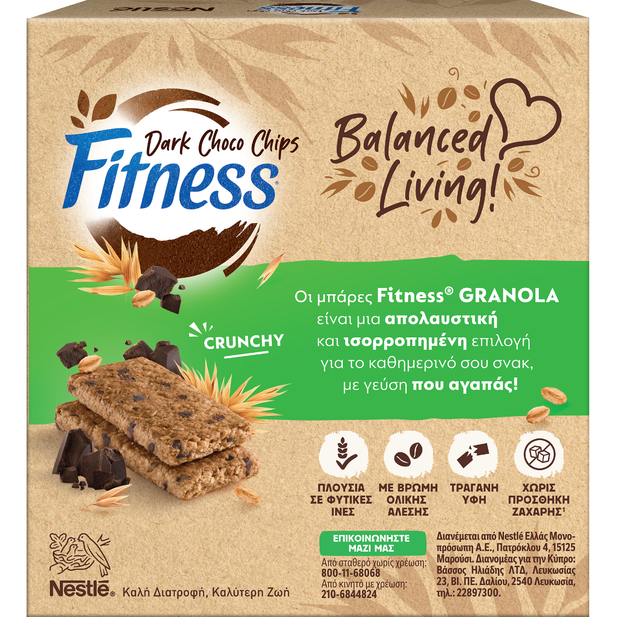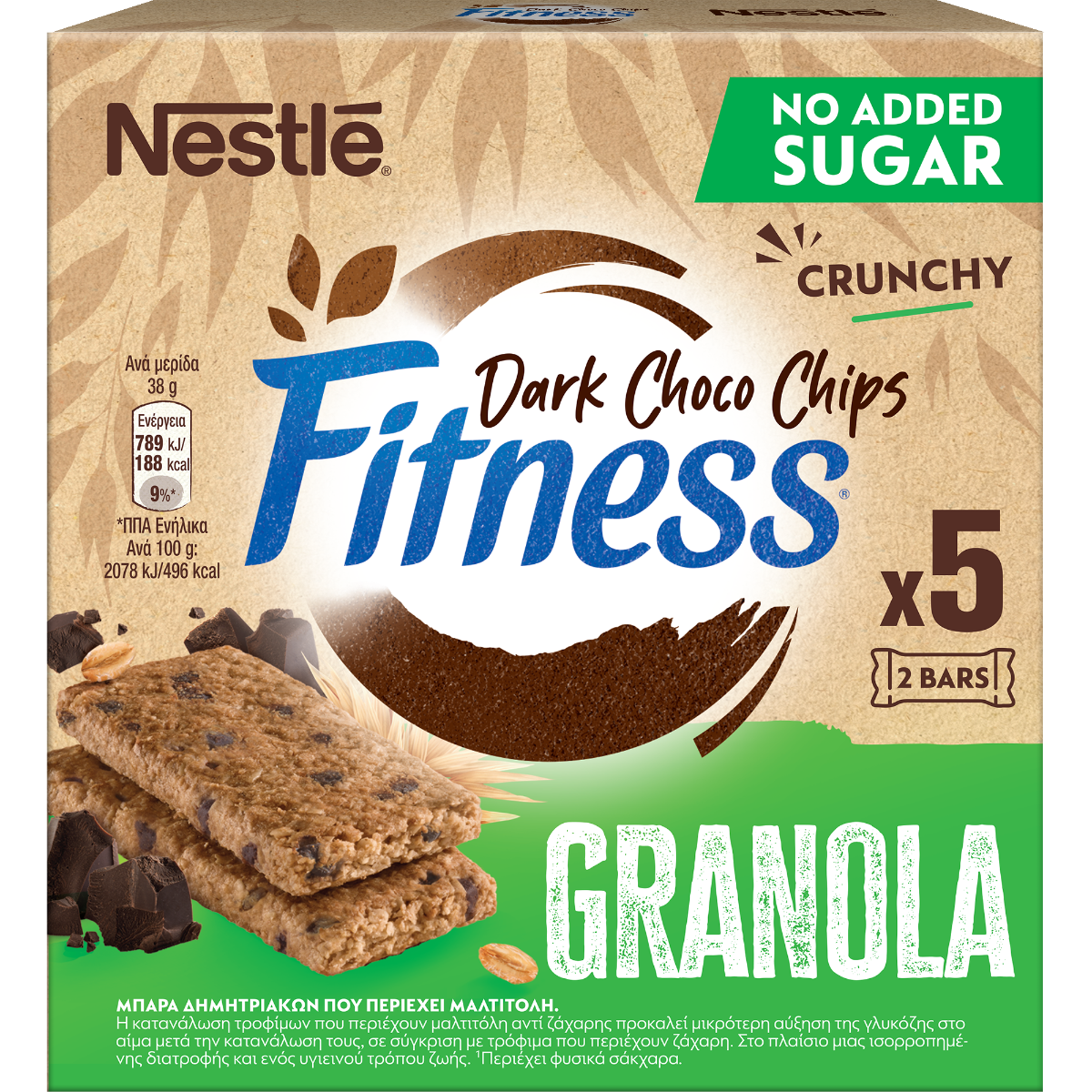 Οι μπάρες FITNESS® GRANOLA NO ADDED SUGAR είναι μια απολαυστική και ισορροπημένη επιλογή για το καθημερινό σου on-the-go σνακ, με γεύση που αγαπάς! Φτιαγμένες με βρώμη ολικής άλεσης είναι πλούσιες σε φυτικές ίνες και αποτελούν την κατάλληλη επιλογή για όσους θέλουν να μειώσουν τη ζάχαρη από τη διατροφή τους χωρίς να στερηθούν την απόλαυση. Περιέχει φυσικά σάκχαρα. MΠΑΡΑ ΔΗΜΗΤΡΙΑΚΩΝ ΧΩΡΙΣ ΠΡΟΣΘΗΚΗ ΖΑΧΑΡΗΣ, ΜΕ ΚΟΜΜΑΤΙΑ ΣΟΚΟΛΑΤΑΣ ΚΑΙ ΓΛΥΚΑΝΤΙΚΑ.