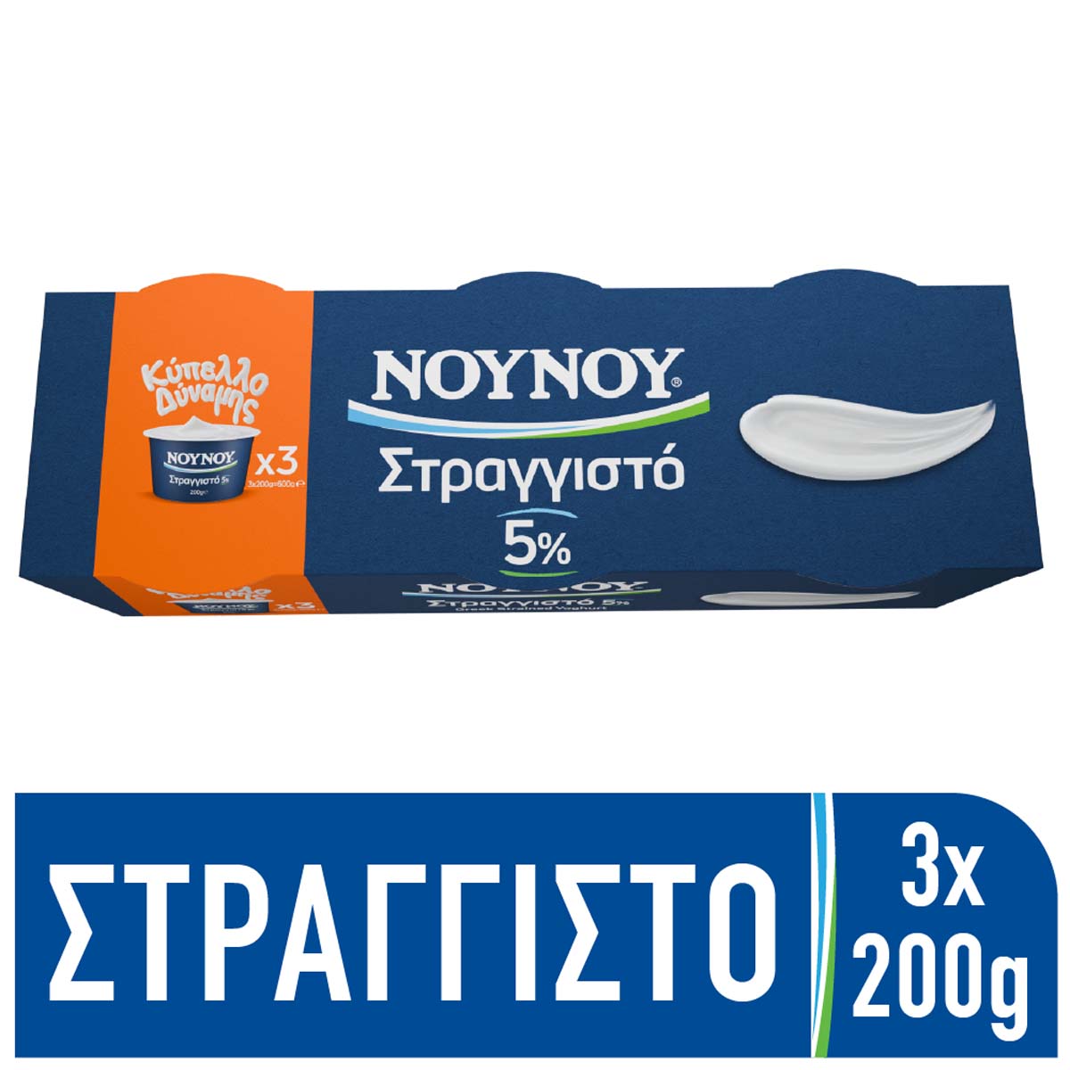 To NOYNOY στραγγιστό 5% είναι ένα αγνό στραγγιστό γιαούρτι με πλούσια αυθεντική γεύση και υψηλή περιεκτικότητα σε πρωτεΐνες υψηλής βιολογικής αξίας, με 19g πρωτεϊνες σε κάθε κύπελλο, η οποία προκύπτει από τον απόλυτα φυσικό τρόπο στράγγισής του. Παράγεται από γάλα άριστης ποιότητας στο πρότυπο εργοστάσιο ΝΟΥΝΟΥ Πάτρας.