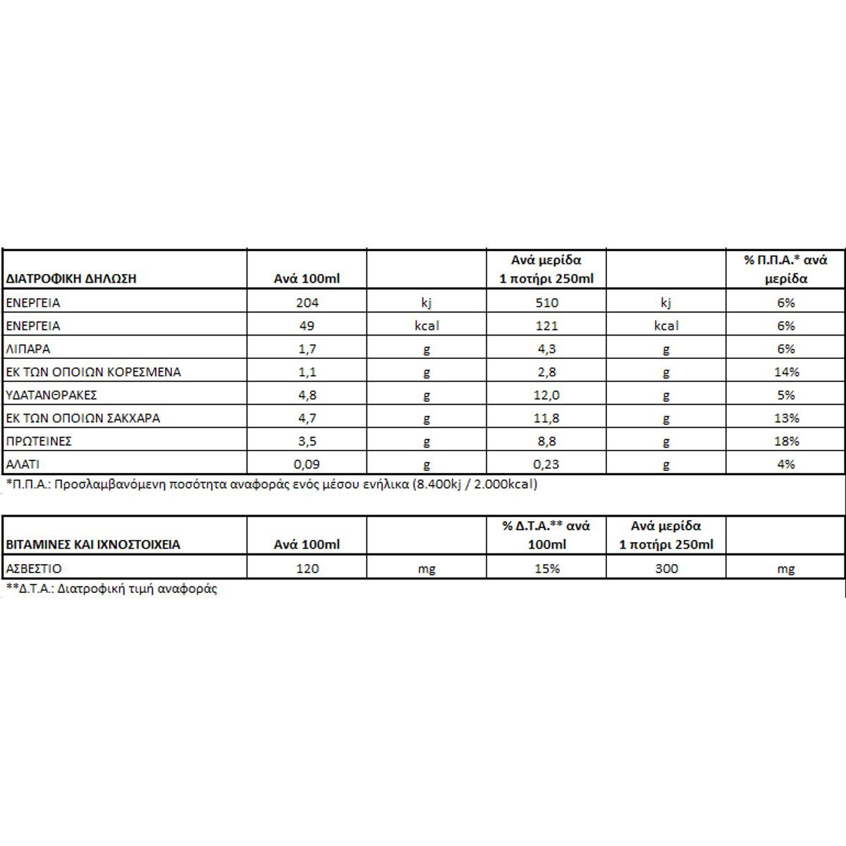 | Ενέργεια (ανά 100g) | 49 kcal |