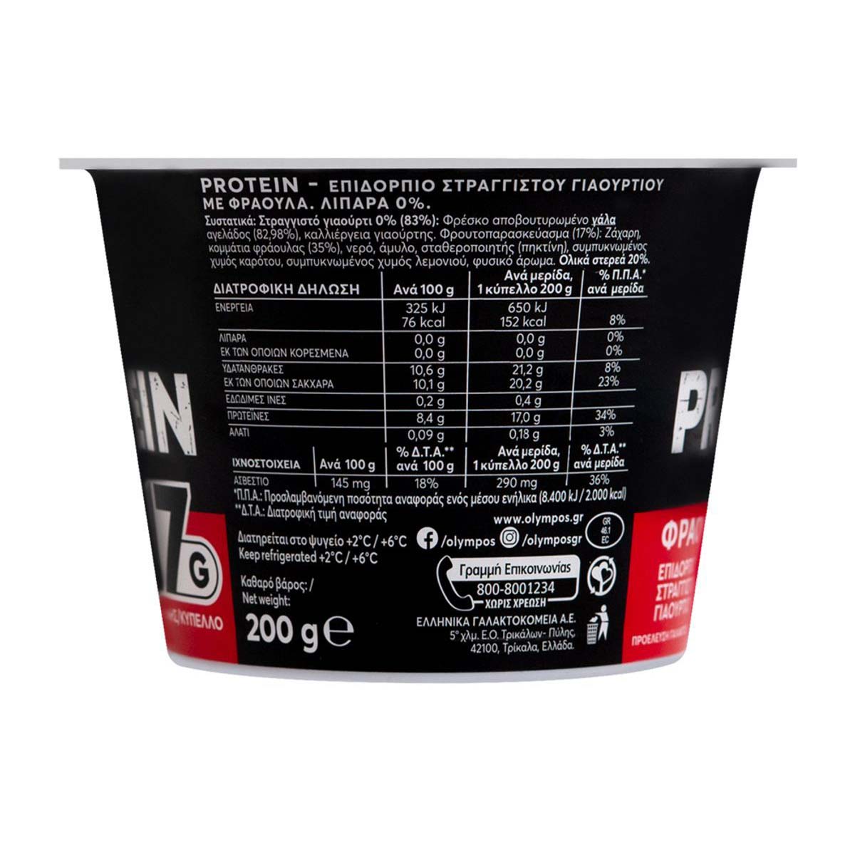 Ένα επιδόρπιο στραγγιστού γιαουρτιού με 0% λιπαρά και 15g πρωτεΐνης σε συνδυασμό με απολαυστικές φράουλες που σου προσφέρει ενέργεια και απόλαυση μαζί. Ιδανικό για όλες τις ώρες της ημέρας .