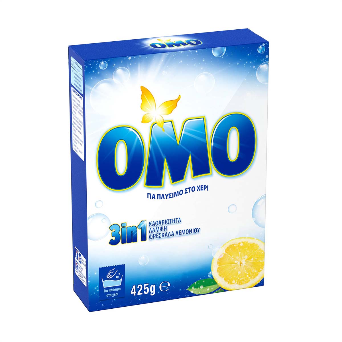 Το ΟΜΟ είναι η ιδανική λύση για πλύσιμο στο χέρι. Χάρη στην προηγμένη σύνθεσή του εξαφανίζει εύκολα και γρήγορα ακόμα και τους πιο δύσκολους λεκέδες. Χρησιμοποιείστε ΟΜΟ για το καθημερινό πλύσιμο στο χέρι και απολαύστε ρούχα αστραφτερά, λαμπερά και γεμάτα φρεσκάδα λεμονιού.