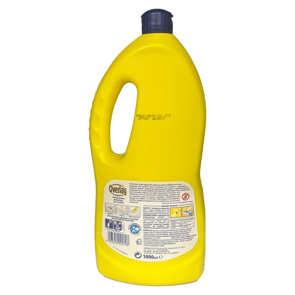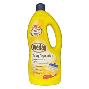 Το Overlay Υγρή Παρκετίνη είναι ένα ειδικό καθαριστικό που καθαρίζει και γυαλίζει όλα τα δάπεδα από κεραμικό, μάρμαρο, τερακότα, παρκέ *, γρανίτη και ημιπορσελάνη χωρίς τη χρήση μηχανής γυαλίσματος. Η νέα σύνθεση του Overlay Υγρή Παρκετίνη, πλούσια σε κερί Carnauba, αφήνει ένα ειδικό προστατευτικό φιλμ στις επιφάνειες, που τις προστατεύει από λεκέδες, γραντζουνιές και υγρασία χωρίς να αφήνει σημάδια, εξασφαλίζοντας λάμψη που διαρκεί. Το Overlay Υγρή Παρκετίνη καθαρίζει, γυαλίζει, θρέφει και προστατεύει τις επιφάνειες, με μία μόνο εφαρμογή. *Χρησιμοποιήστε μόνο σε λουστραρισμένο παρκέ.