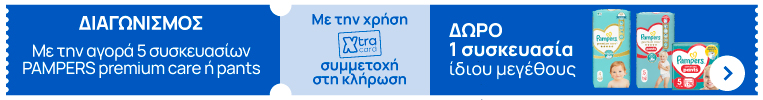 Χαρίστε στο μωρό σας την πιο άνετη πάνα των Pampers με 3πλη προστασία από τις διαρροές, με τις πάνες-βρακάκι Pampers Premium Care Pants! Τώρα με μοναδικό ειδικό σχεδιασμό STOP & PROTECT, που εμποδίζει τις διαρροές στο πίσω μέρος της πάνας-βρακάκι, για ολοκληρωμένη προστασία από διαρροή για έως και 12 ώρες. Καθώς το μωρό σας γίνεται πιο δραστήριο, θα χρειαστείτε μια πάνα που προσφέρει άνετη εφαρμογή και αξιόπιστη προστασία, που ακολουθεί κάθε του κίνηση. Γι’ αυτό τα Pampers Premium Care Pants Πάνες-Βρακάκι προσφέρουν την μεγαλύτερη άνεση και προστασία των Pampers, με εφαρμογή 360° Comfort Fit, χάρη στα εξαιρετικά μαλακά και ελαστικά υλικά, που εφαρμόζουν απόλυτα στο σωματάκι του ζωηρού μωρού σας. Όπως όλες οι πάνες-βρακάκι, τα Pampers Premium Care Pants Πάνες-Βρακάκι είναι εύκολα στην αλλαγή: τραβήξτε προς τα πάνω για να τη βάλετε, σκίστε τα πλαϊνά για να την βγάλετε και κολλήστε την με την ταινία για εύκολη απόρριψη, ακόμη κι όταν το μωρό σας κινείται έντονα. Όπως για εσάς, έτσι και για τα Pampers, προέχει η ασφάλεια του μωρού σας: Οι πάνες-βρακάκι Pampers Premium Care Pants είναι δερματολογικά ελεγμένες και δεν περιέχουν αλλεργιογόνες αρωματικές ουσίες (όπως ορίζονται στον Ευρωπαϊκό Κανονισμό αριθ. 1223/2009 για τα καλλυντικά προϊόντα). Έχουν εγκριθεί από τους δερματολόγους της Skin Health Alliance ως ασφαλείς για την επαφή με το δέρμα του μωρού. Θέλετε να μάθετε περισσότερα για τα συστατικά που χρησιμοποιoύν τα Pampers; Επισκεφθείτε τον ιστότοπο pampers.gr