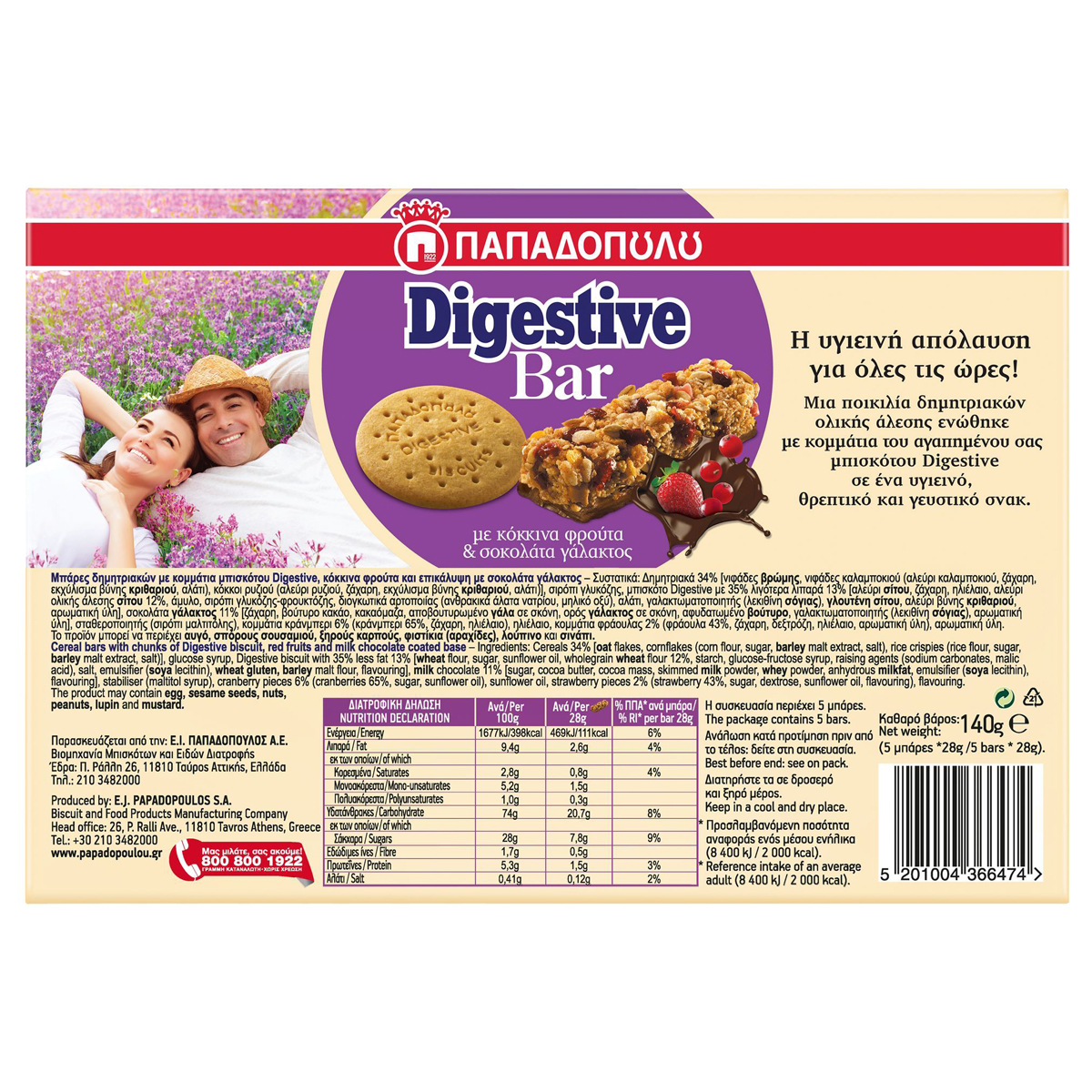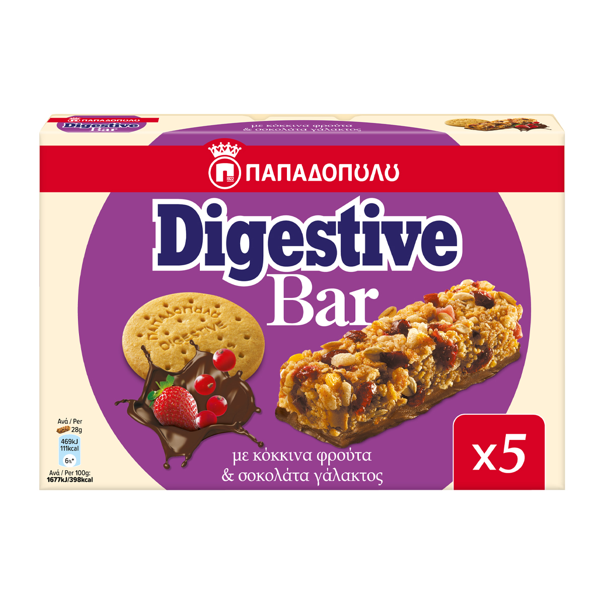 Λαχταριστά κόκκινα φρούτα σε τέλειο συνδυασμό με δημητριακά και μπισκότο Digestive με επικάλυψη σοκολάτας γάλακτος! Μπάρες δημητριακών για όσους αναζητούν την ακαταμάχητη γεύση της σοκολάτας σε συνδυασμό με δροσερά κόκκινα φρούτα!