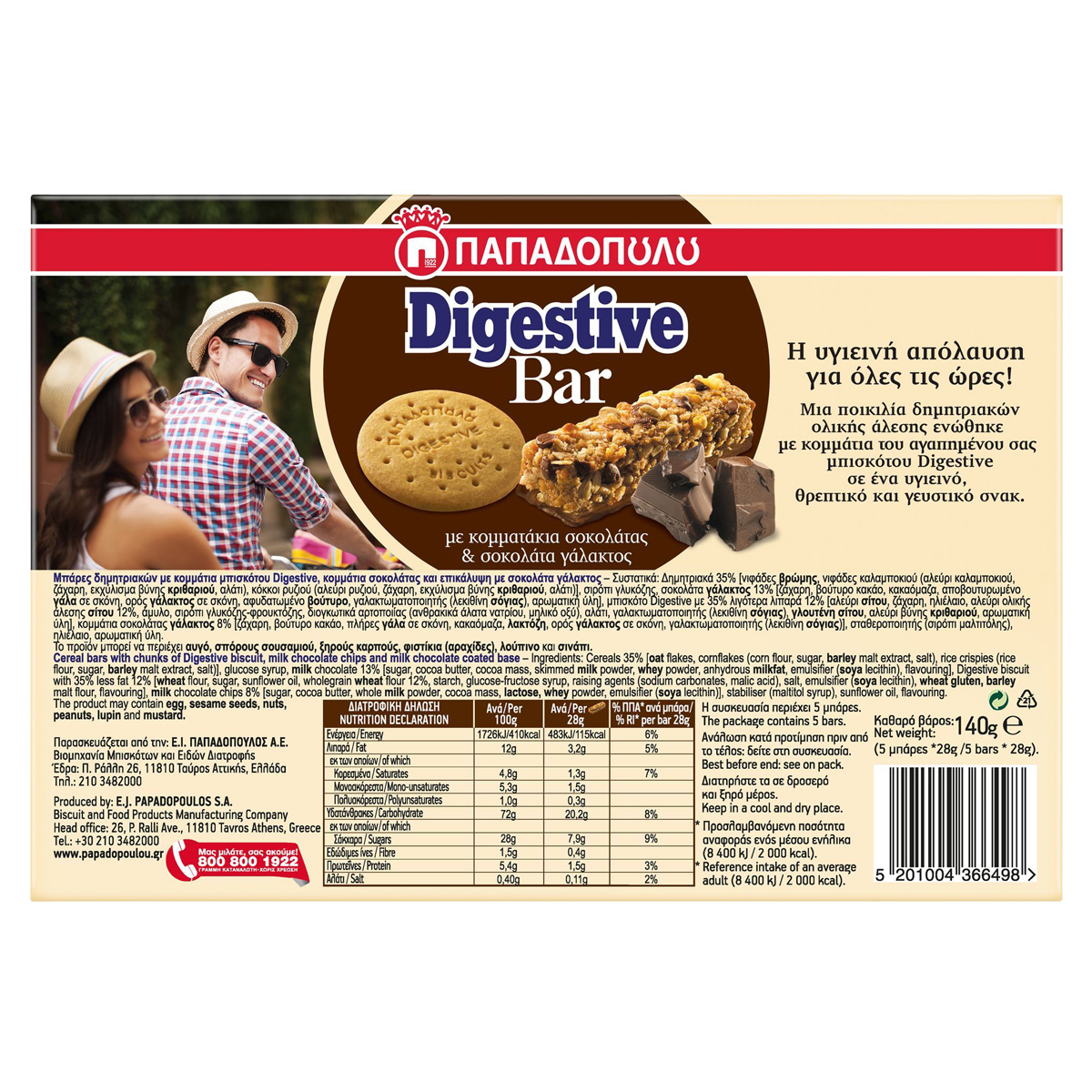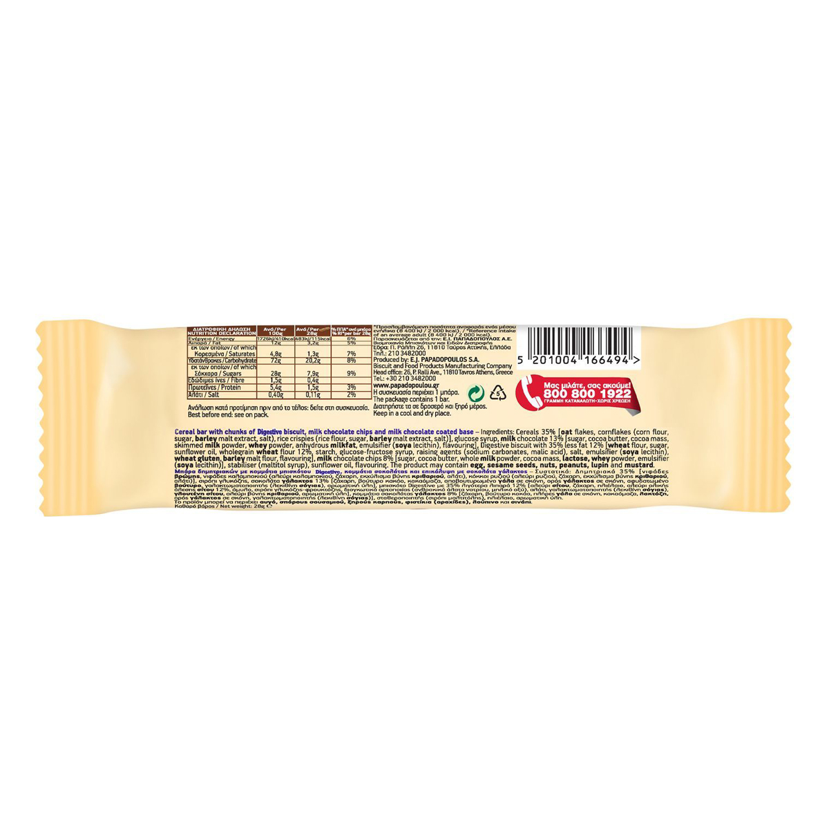 Απολαυστικός συνδυασμός με κομμάτια σοκολάτας, μπισκότο Digestive, 4 δημητριακά και επικάλυψη με σοκολάτα γάλακτος! Ιδανική επιλογή για όσους αναζητούν την απόλαυση της σοκολάτας και στις μπάρες δημητριακών!