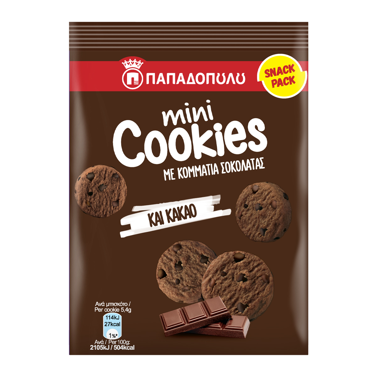 Παπαδοπούλου Mini Cookies Μπισκότα Με Κομμάτια Σοκολάτας Και Κακάο 70 gr