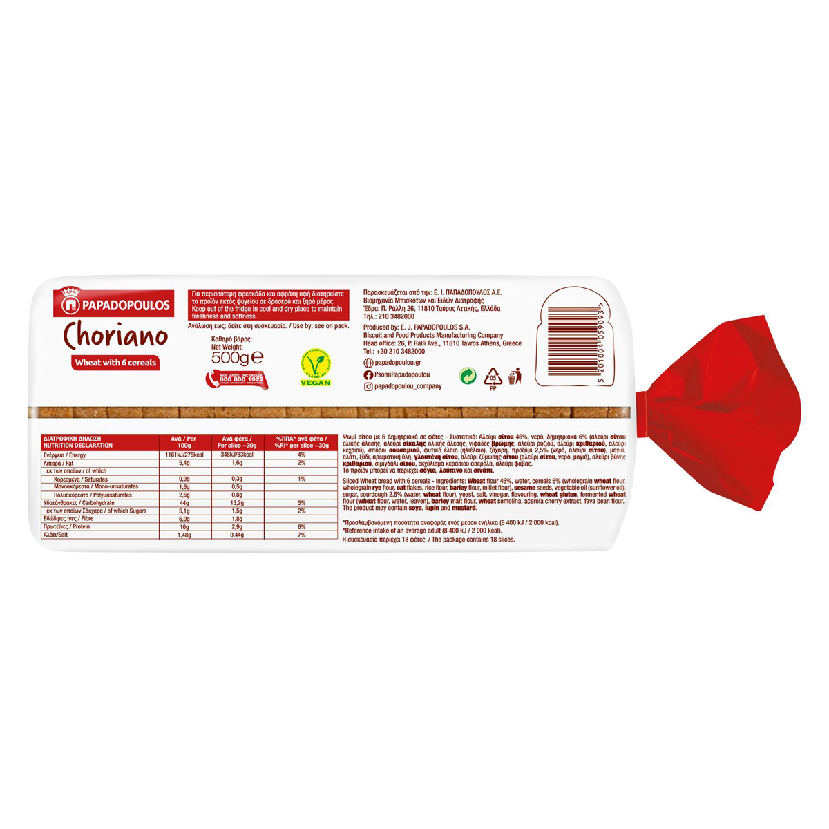 Άλευρα 6 δημητριακών, σίτου , σίκαλης, ρυζιού, κεχριού, κριθαριού και νιφάδες βρώμης αναμειγνύονται με μαγιά και φυσικό προζύμι για δημιουργηθεί αυτό το αφράτο και νόστιμο ψωμί. Απολαύστε το σε κρύο sandwich!
