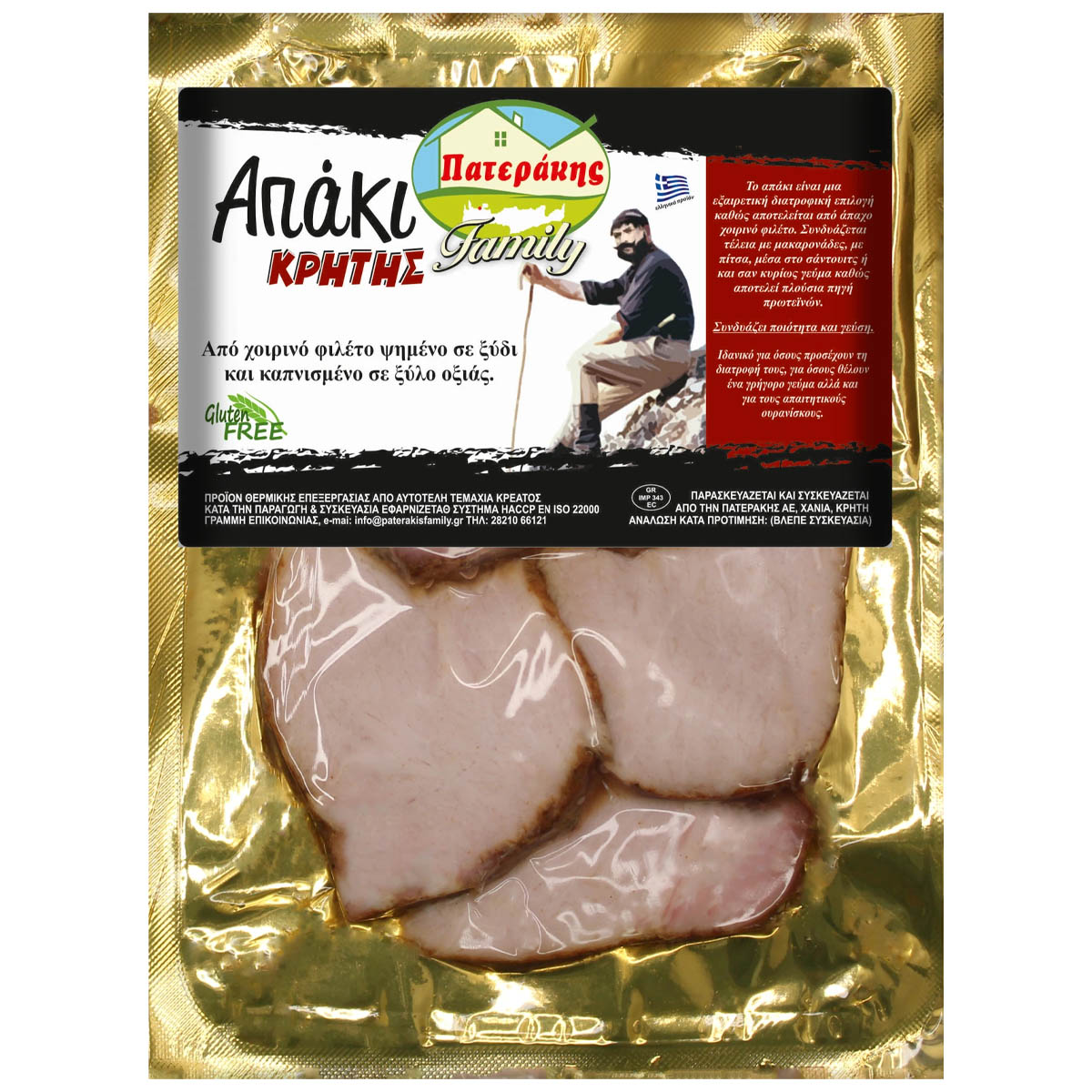 Το Απάκι παραπέμπει σε μια ιδιαίτερη γεύση που συναντάται στα βουνά της Κρήτης. Στο ιστορικό χωριό των Ανωγείων οι άνθρωποι ζουν εξαρτώμενοι από την φύση διαιωνίζοντας αρχαίες παραδόσεις. Η ανάγκη διατήρησης μεγάλης ποσότητας κρέατος, έως ότου καταναλωθεί, οδήγησε σε ξεχωριστές μεθόδους με πολύ γευστικά αποτελέσματα.