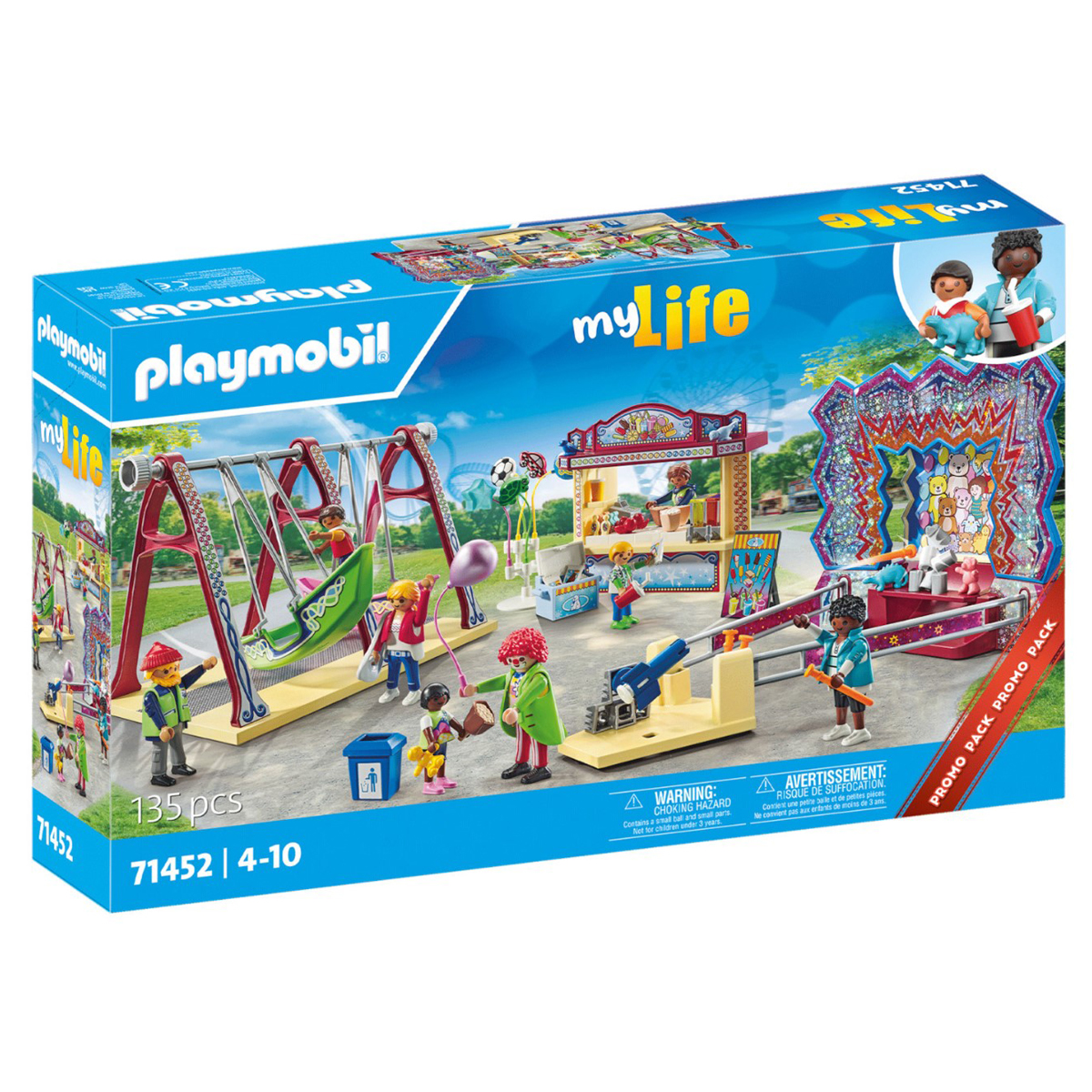Σήμερα θα επισκεφθούμε το Λούνα Παρκ! Πρώτα θα δοκιμάσουμε τιςς δεξιότητες μας στις κορίνες και θα κάνουμε κούνια. Φυσικά, δεν γίνεται να μη δοκιμάσουμε τα πεντανόστιμα σνακ της καντίνα. Περιλαμβάνει απίθανα αξεσουάρ για περισσότερη διασκέδαση. Με αυτό το σετ παιχνιδιού PLAYMOBIL Λούνα Παρκ τα παιδιά, ηλικίας 4 ετών και άνω, μπορούν να διασκεδάσουν στον απόλυτο προορισμό παιχνιδιού, ένα λούνα παρκ. Είτε κάνουν κούνια, είτε δοκιμάζουν την τύχη τους στη σκοποβολή, είτε τρώνε νόστιμα σνακ στον πάγκο με τα φαγητά, η εμπειρία θα τους μείνει αξέχαστη. Το σετ περιλαμβάνει 8 φιγούρες PLAYMOBIL, ένα περίπτερο με λαχταριστά σνακ, μία κούνια με βαρκούλες, ένα σκοπευτήριο με λειτουργικό μηχανισμό βολής και πολλά άλλα αξεσουάρ.