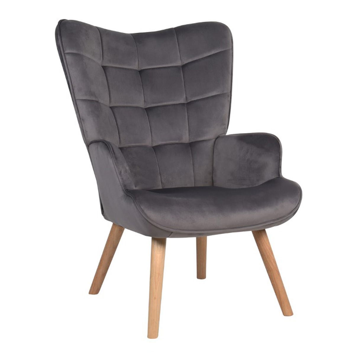 Πολυθρόνα Βελούδινη Ξύλινα Πόδια Γκρι 73 x 69 x 96 cm