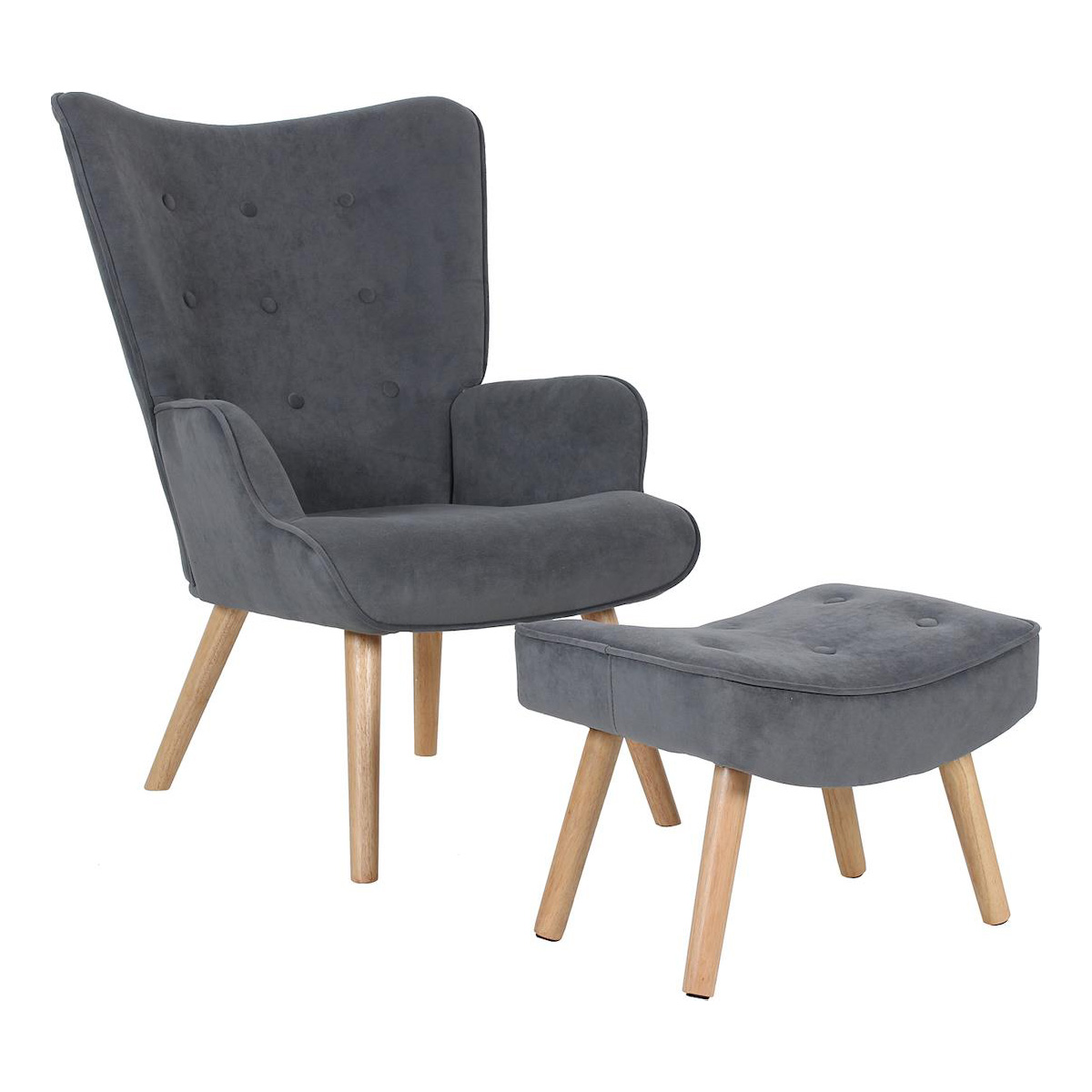 Πολυθρόνα Μπερζέρα Με Υποπόδιο Βελούδινο Γκρι 73 χ 69 χ 96 cm